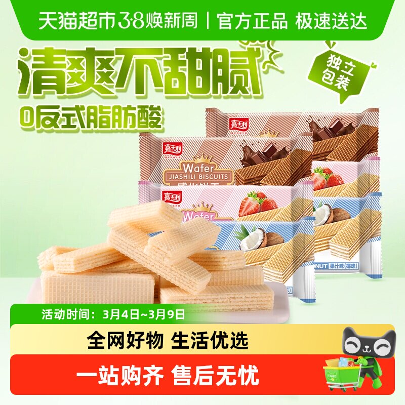 嘉士利威化饼干混合口味椰子味夹心儿童零食网红早餐代餐特产小吃