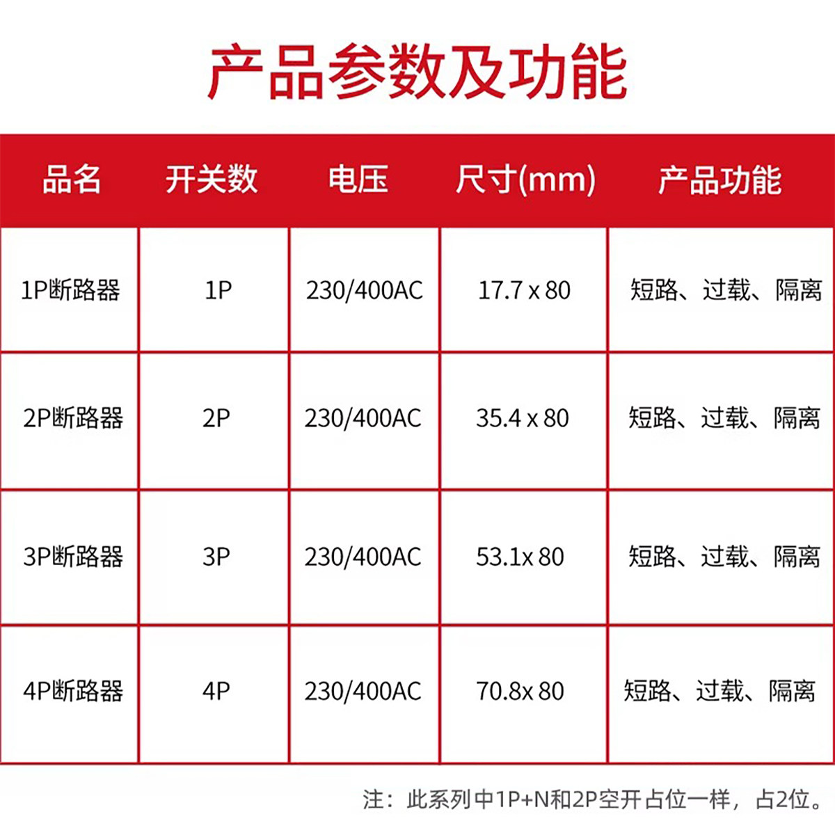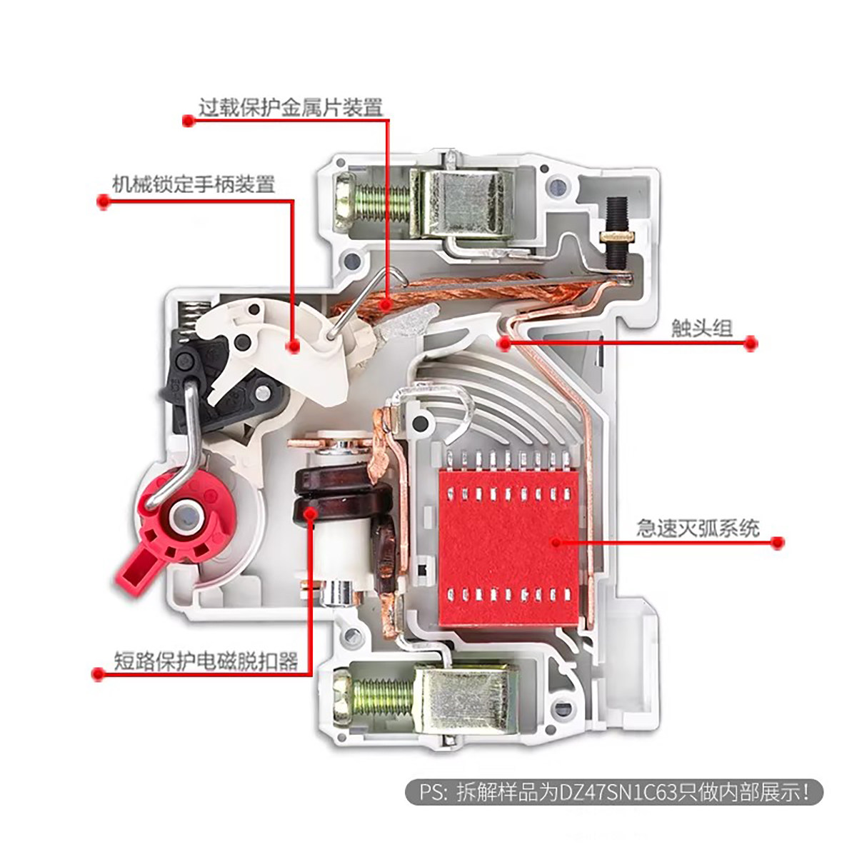 德力西电气断路器DZ47S空气开关1P空开2P家用32a63a三相3P电闸4P