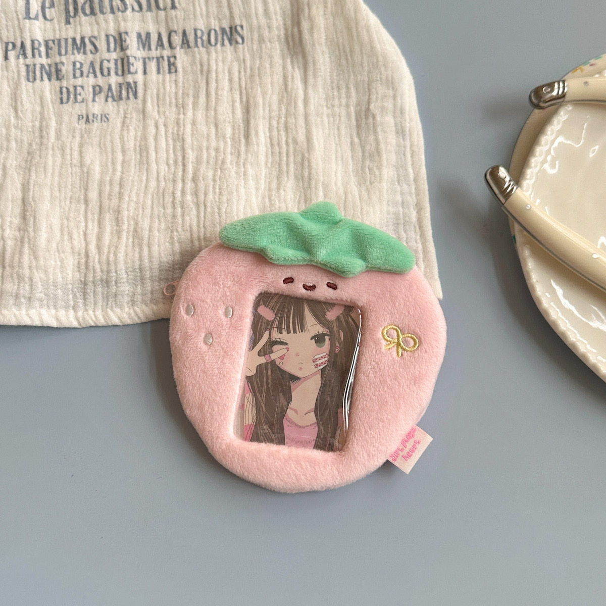 少女玩心原创草莓毛绒卡套ins风饭卡校园卡追星小卡卡套书包挂件
