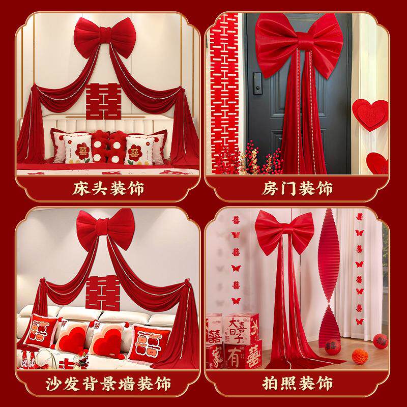 婚房布置酒店套装婚礼男女方客厅卧室蝴蝶结装饰新房结婚拍照道具