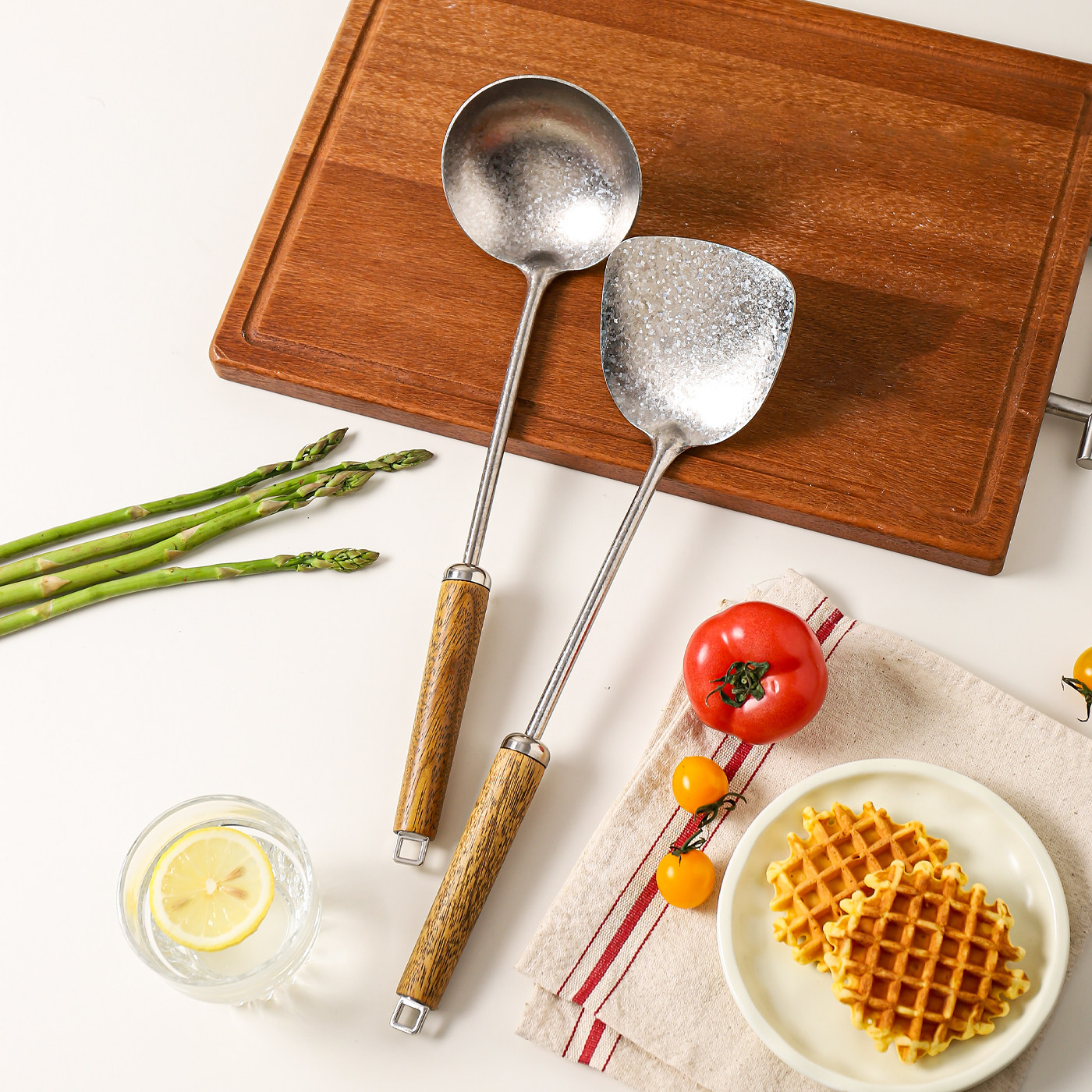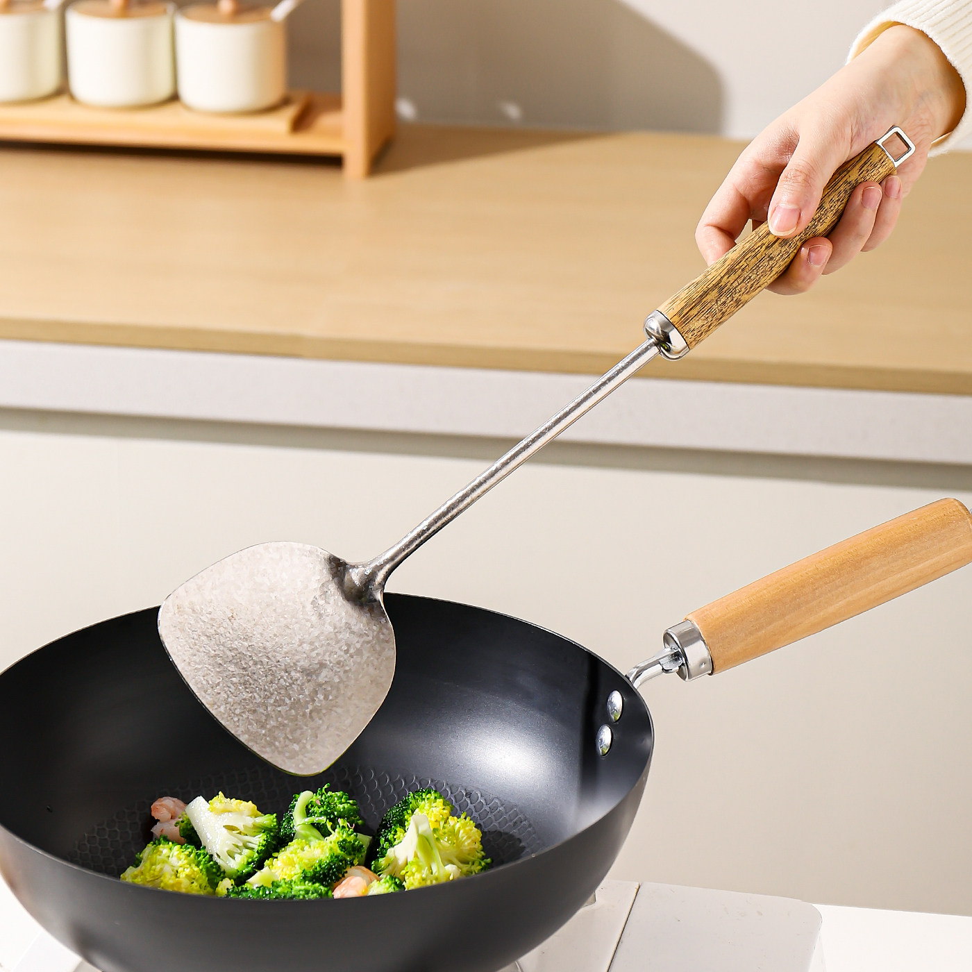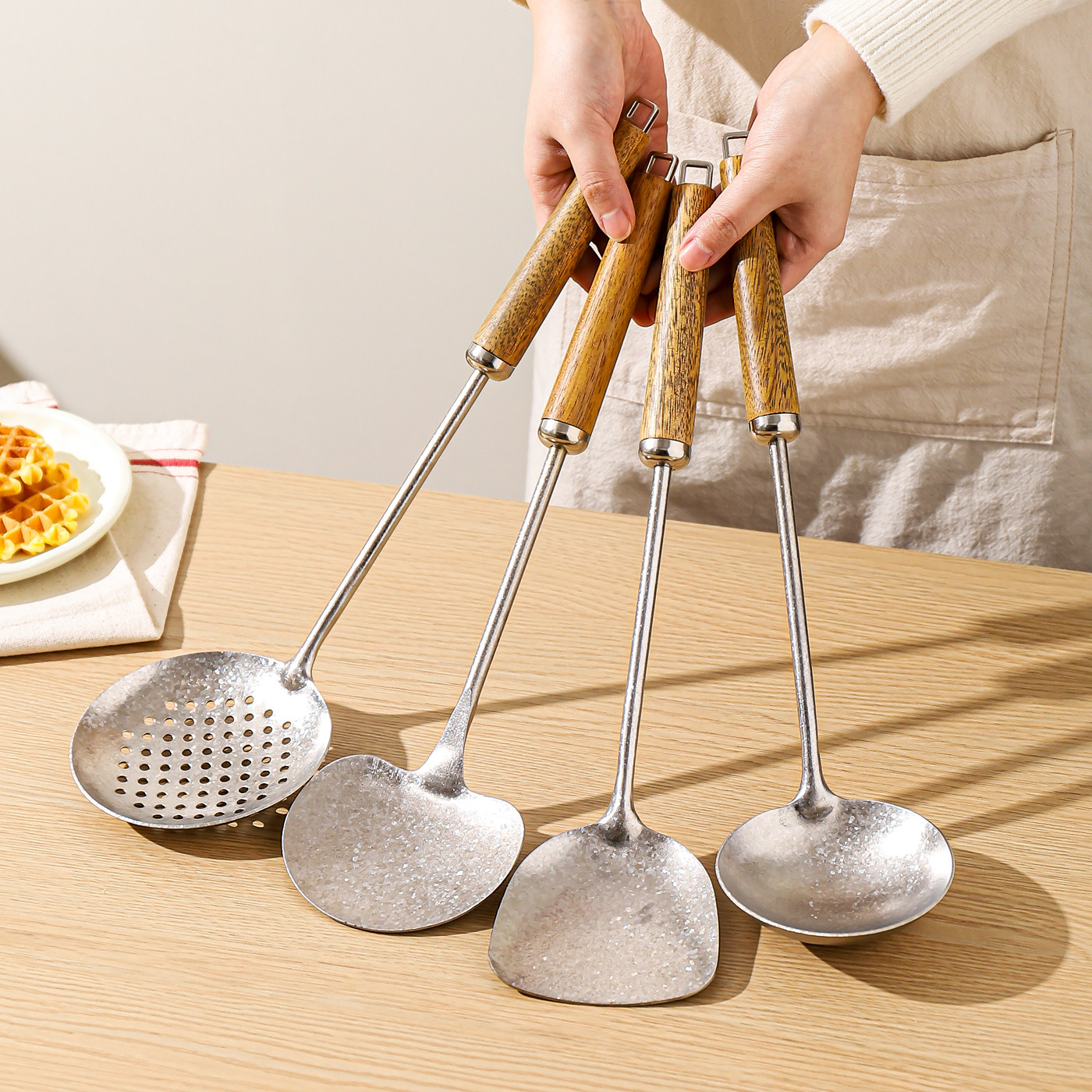 川岛屋纯钛锅铲炒菜蘑菇铲子炒勺汤勺木柄把厨房厨具套装全套家用