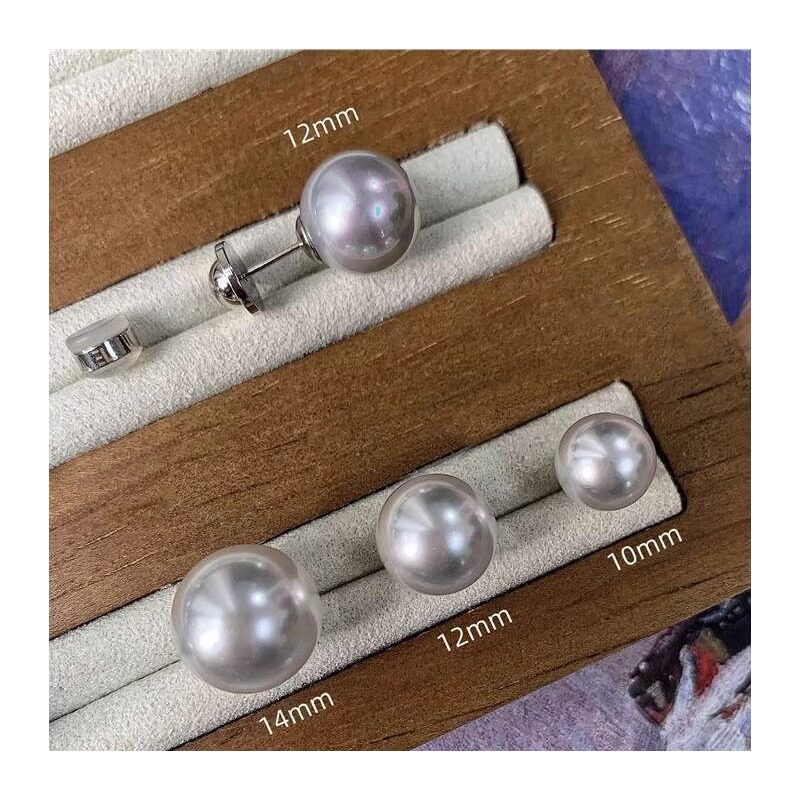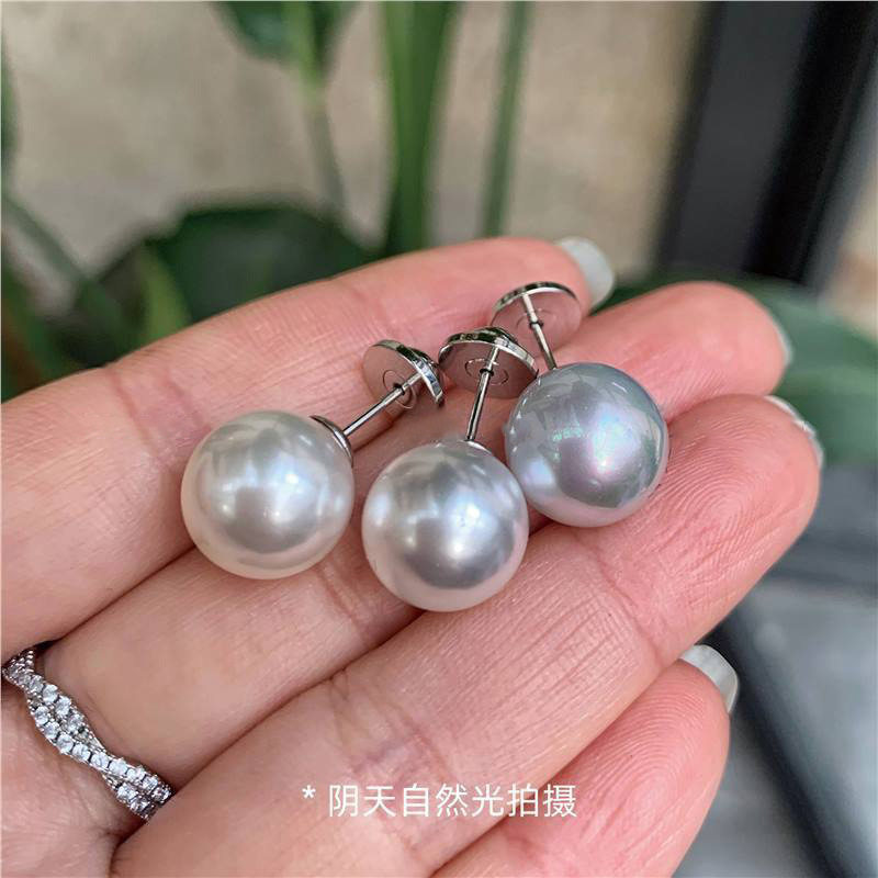 【珀姿卡】人造顶ji银蓝光澳白冷光海水珍珠耳钉无耳洞耳夹通体银