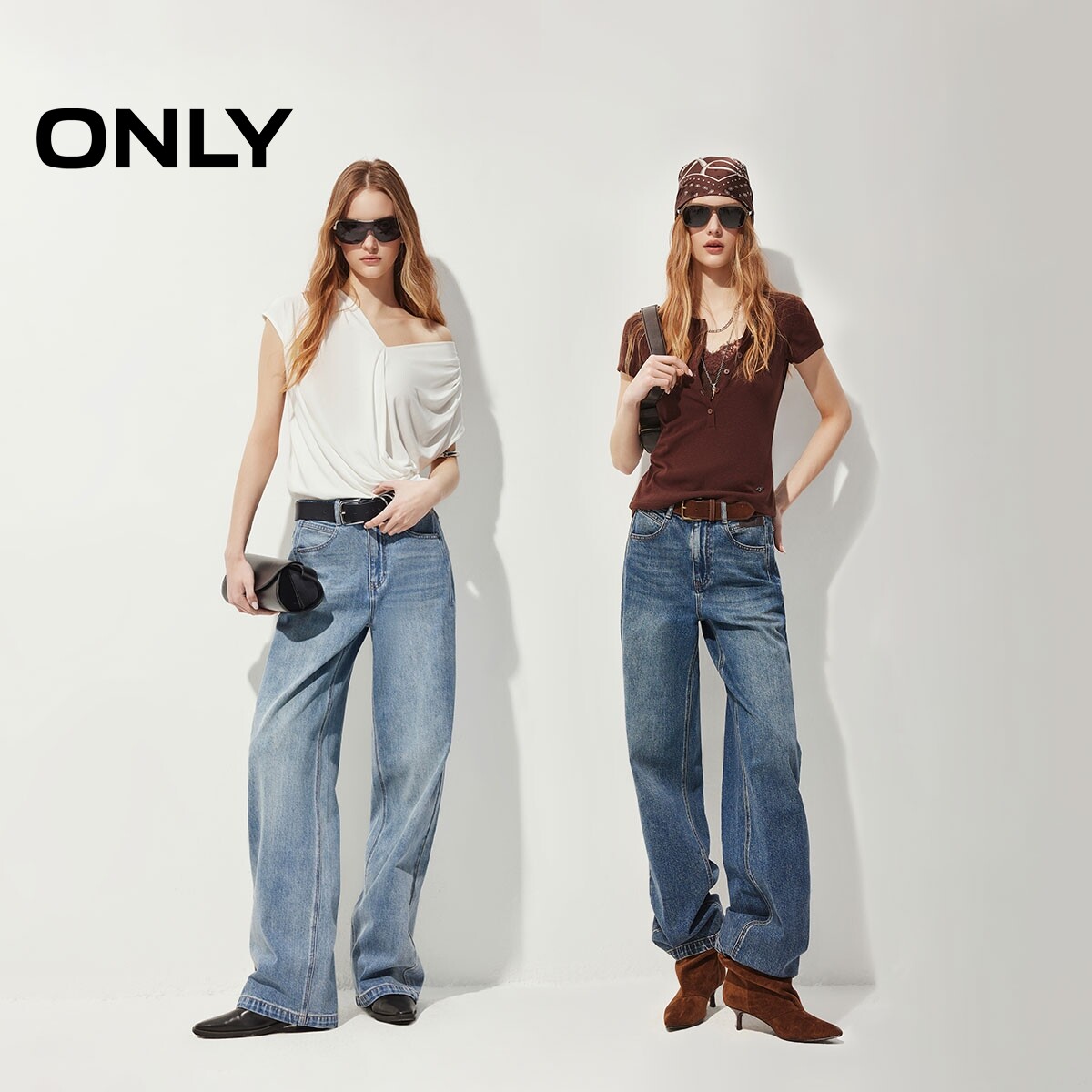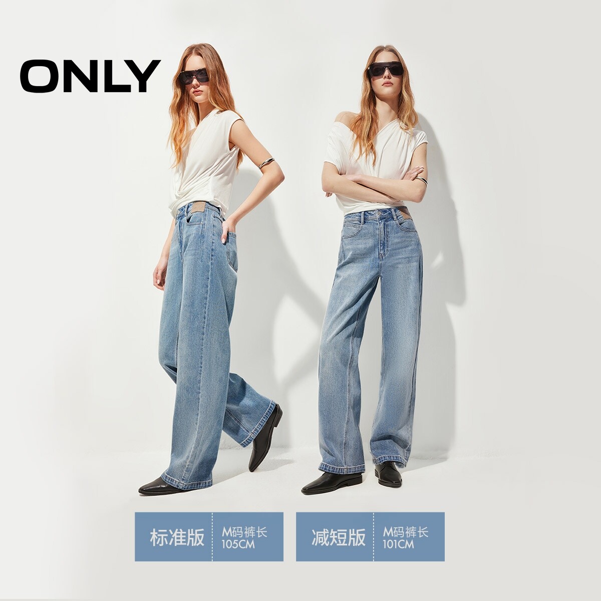 ONLY2026春季新款酷感复古水洗高腰皮牌装饰宽松长裤直筒牛仔裤女