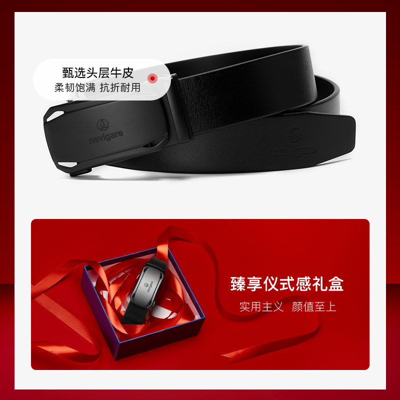 navigare意大利小帆船皮带男士真皮自动扣腰带商务休闲百搭裤带