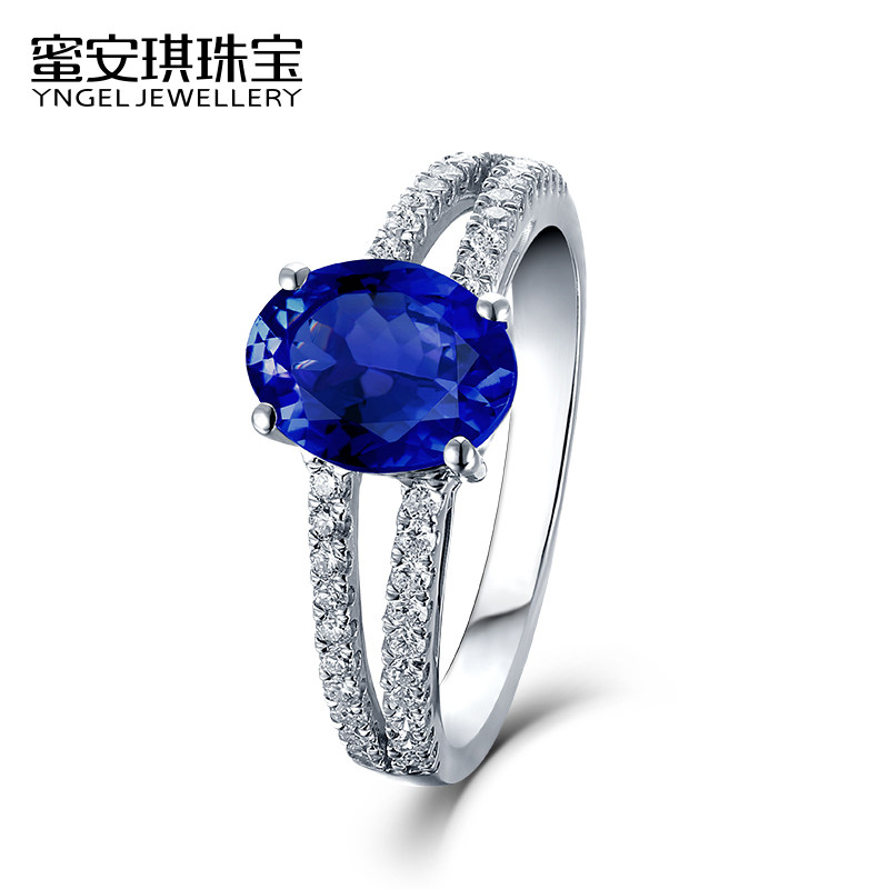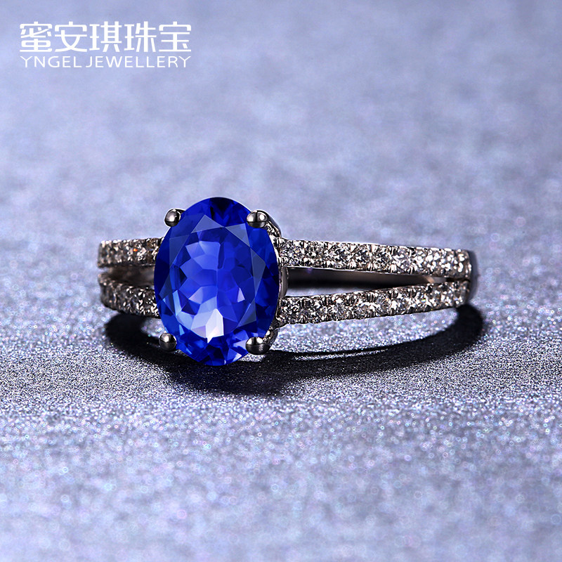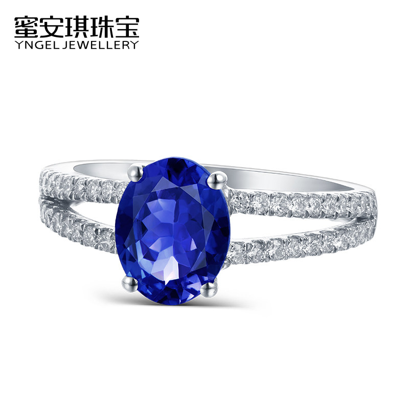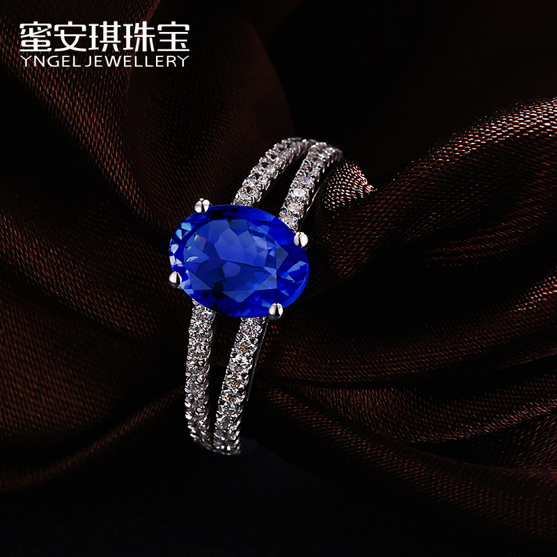Yngel/蜜安琪1.70~3.54CT天然坦桑石戒指女18K金镶嵌钻戒彩宝定制