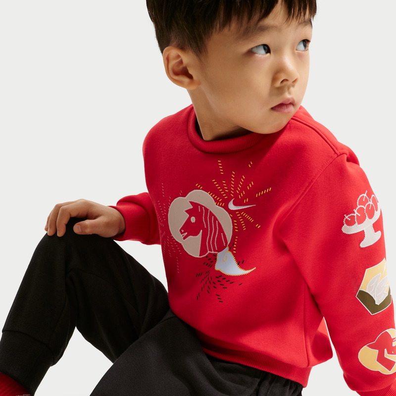 耐克马年限定脱缰系列新年款婴童红色上衣春新款NIKE CLUB IU5258