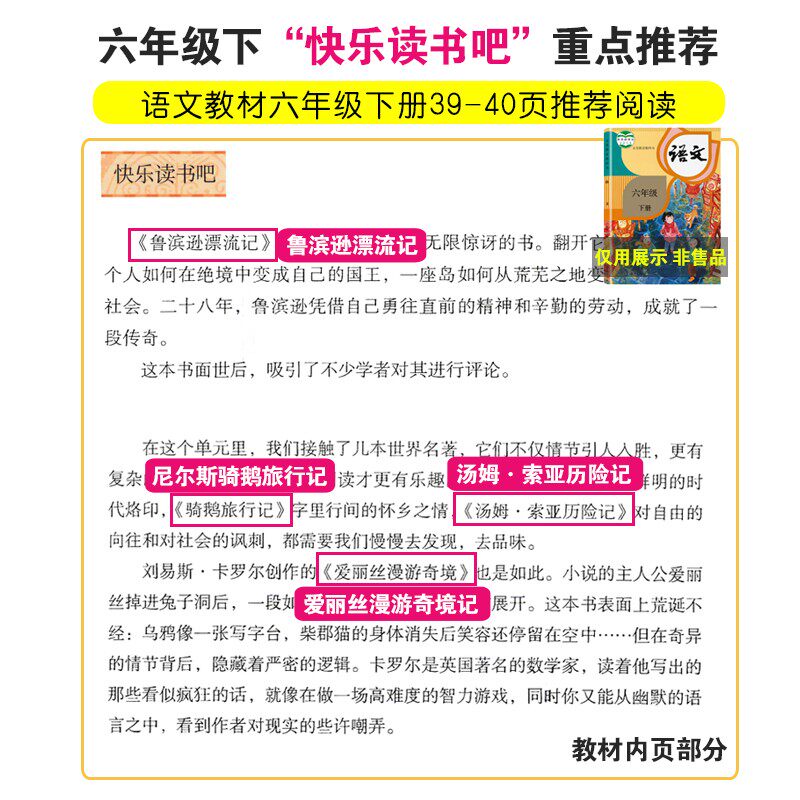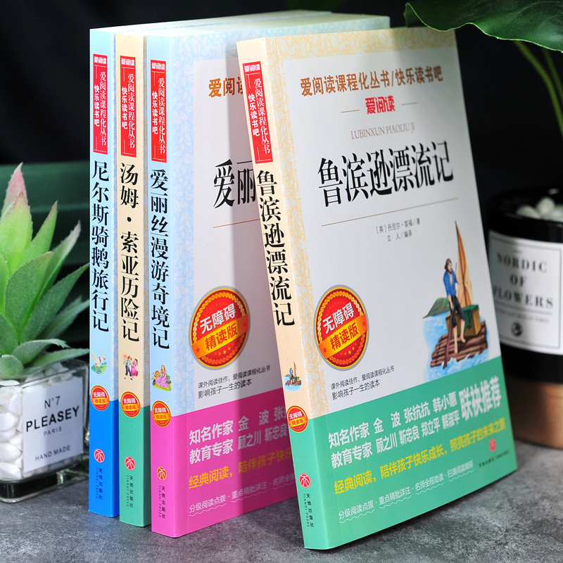 4册六年级下册鲁滨逊漂流记小学生爱丽丝梦游仙境漫游奇境记尼尔斯骑鹅旅行记汤姆索亚历险记必课外书读6年级必读童话阅读成长读书