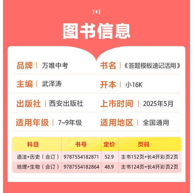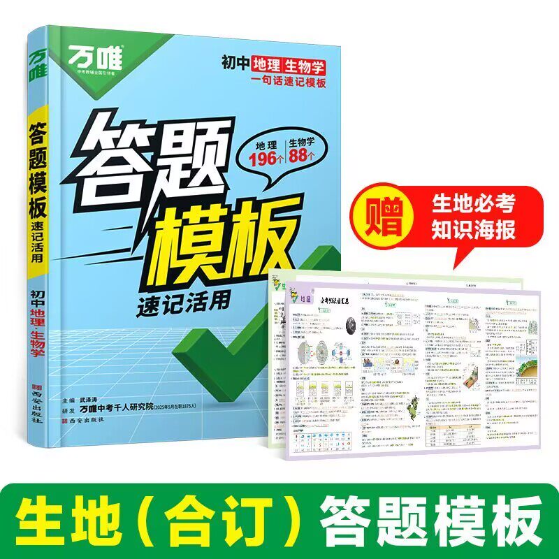 2026万唯初中答题模板速记政治历史地理生物知识点活用