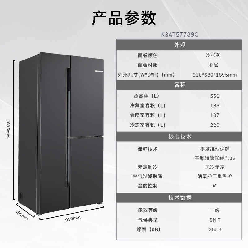 【门店体验】博世550L风冷零距离超薄嵌入式冰箱T3对开三门789C
