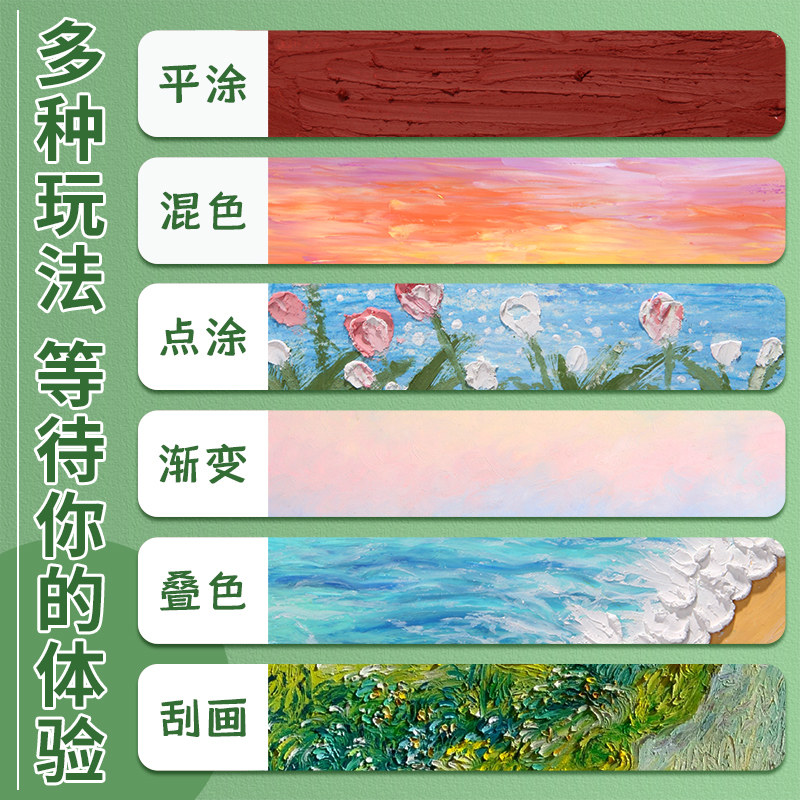 千汇超软油画棒刮刀软性重彩套装软性油性水溶儿童小学生蜡笔36色油画棒纸48马卡龙色专业美术生绘画白色套装