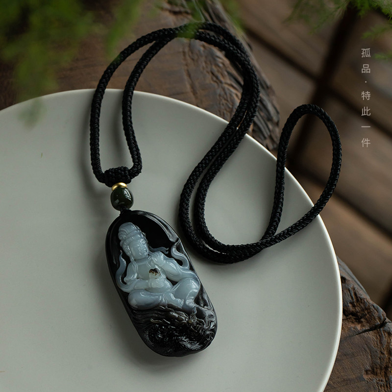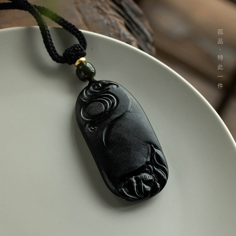 普陀山黑曜石无事牌吊坠女天然护身符项链平安符送男朋友的礼物