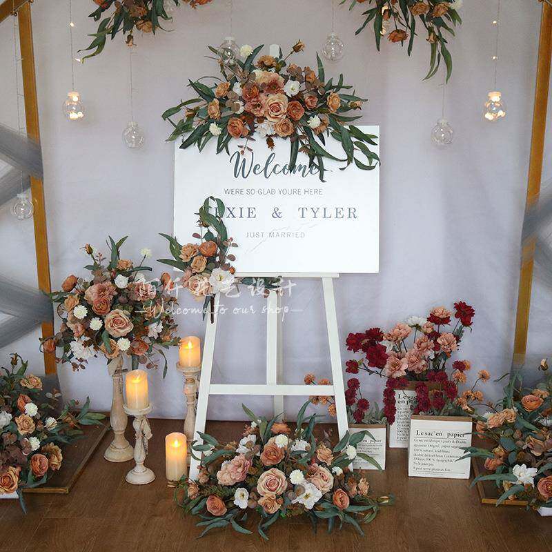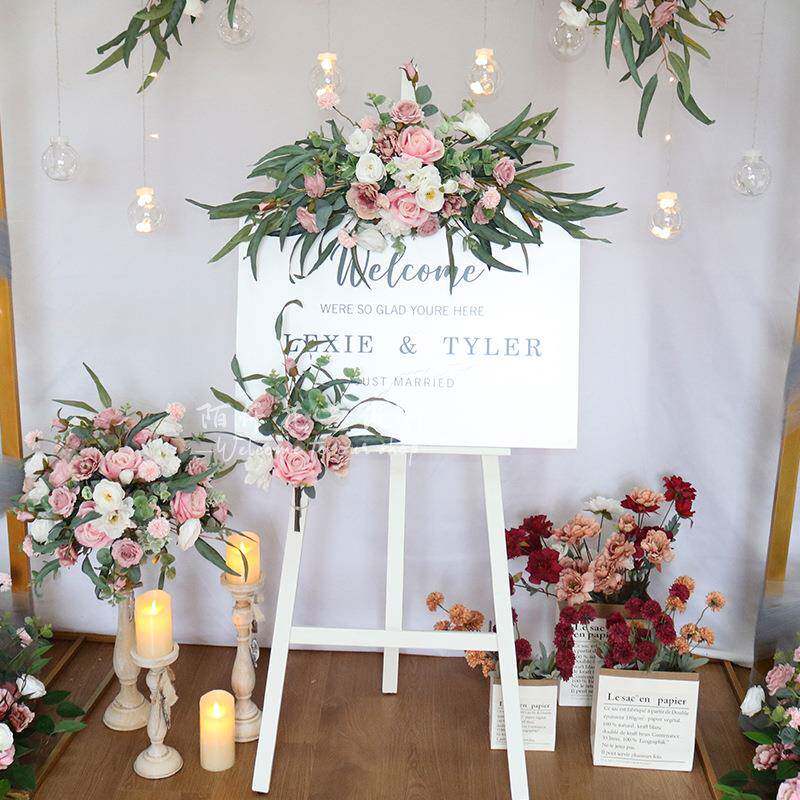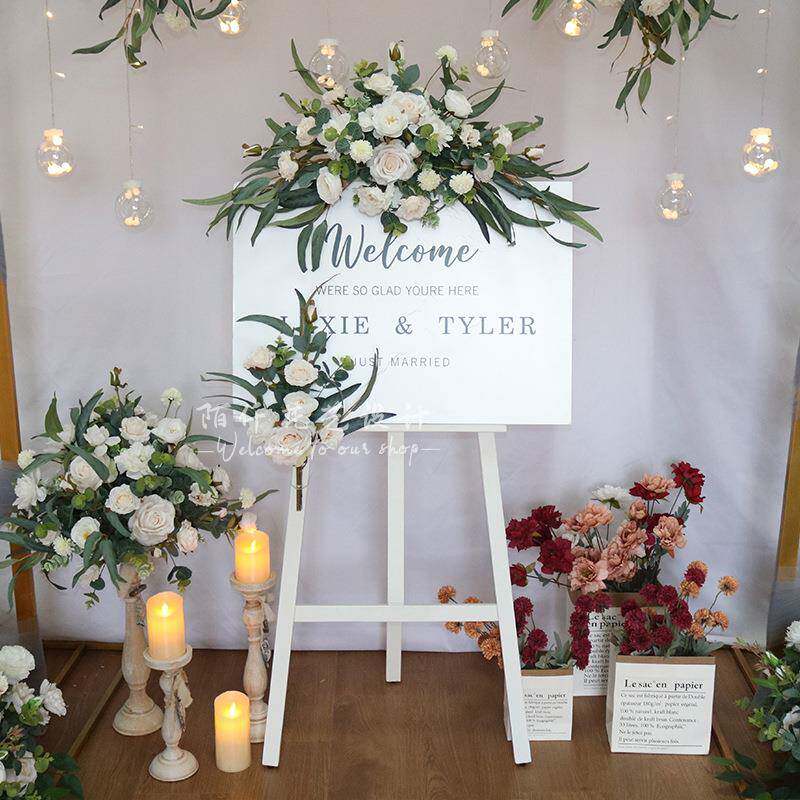 婚礼迎宾牌仿真复古花艺 婚庆道具花 酒店指示牌仿真植物办公文化