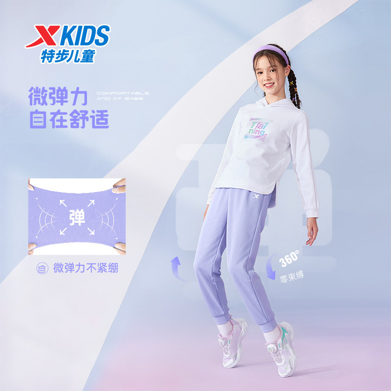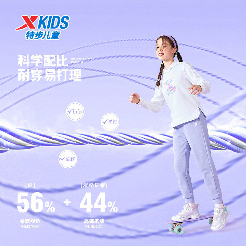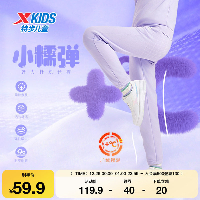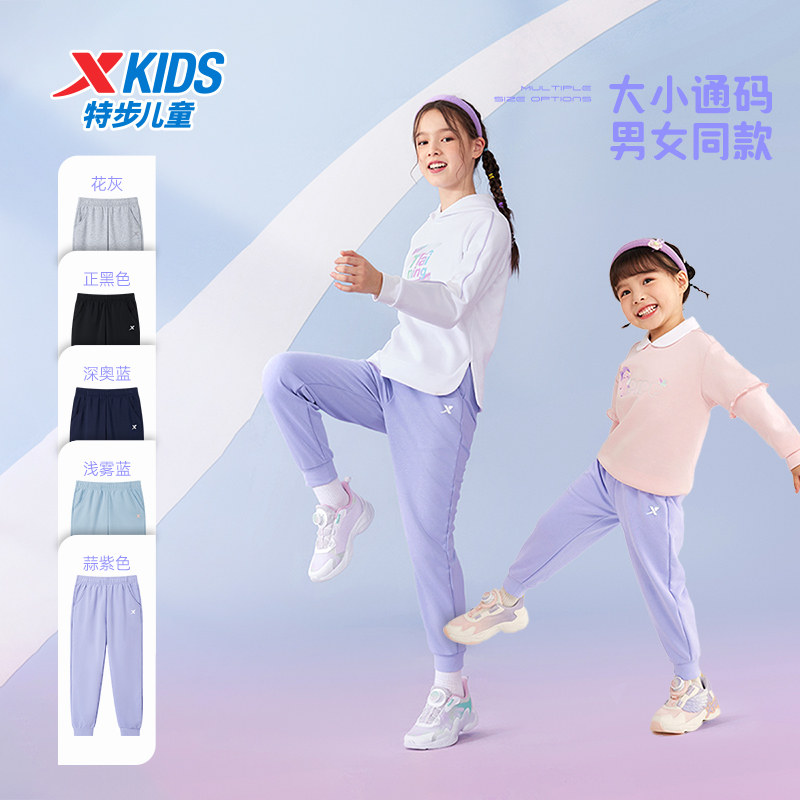 特步童装女童裤子秋冬新款儿童春装男童针织长裤中大童运动裤加绒