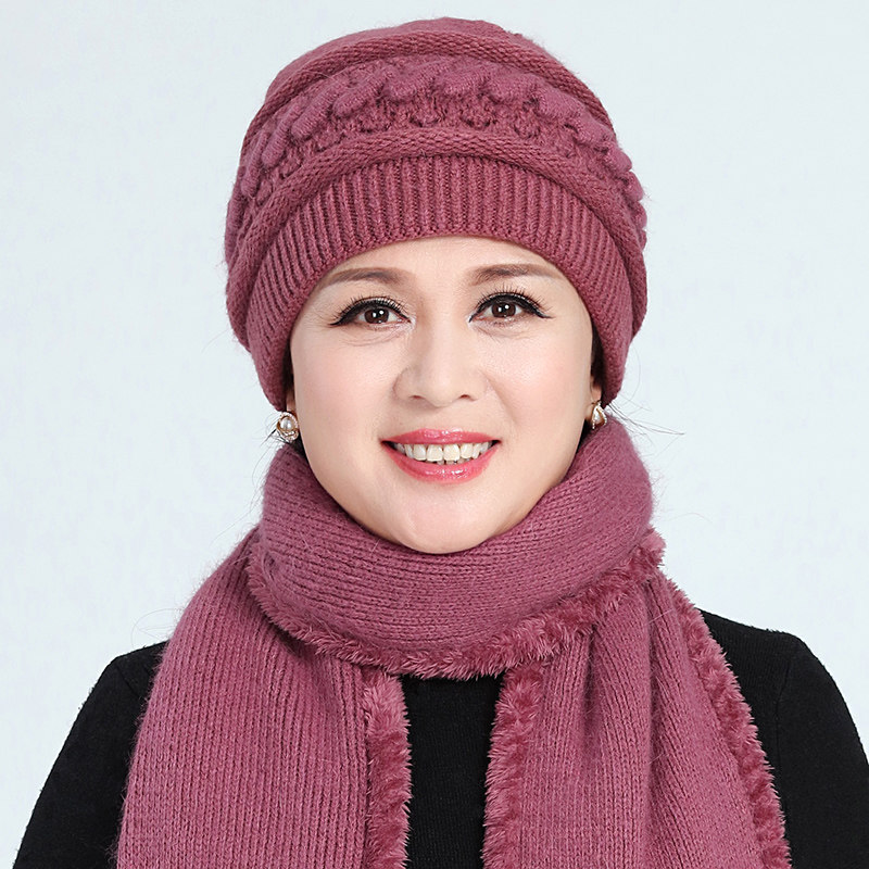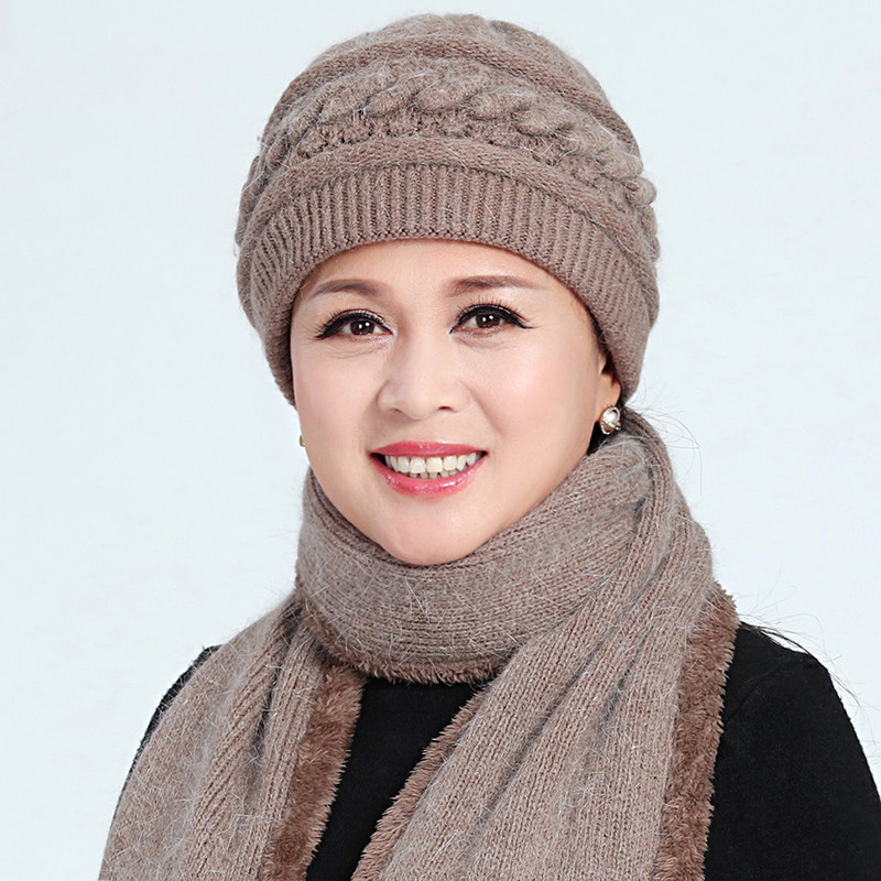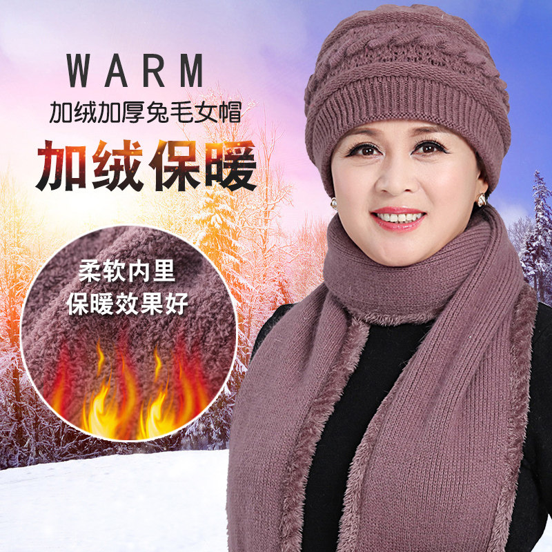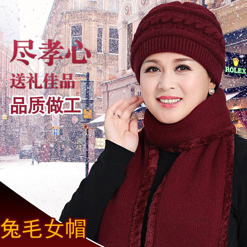 中老年人帽子女士冬天毛线帽老年兔毛老人女奶奶冬季妈妈围巾立体