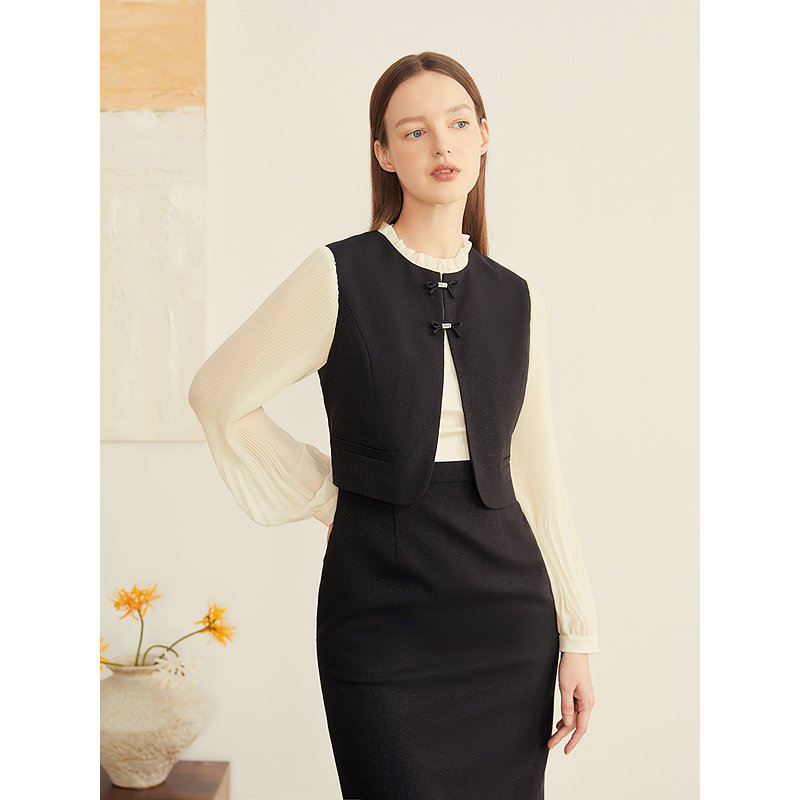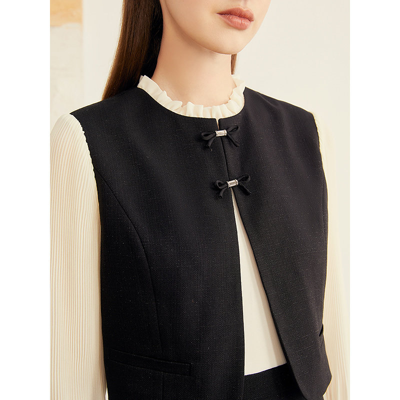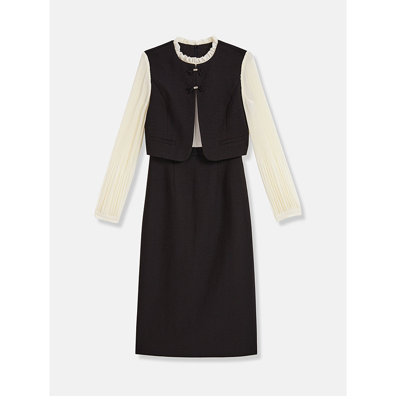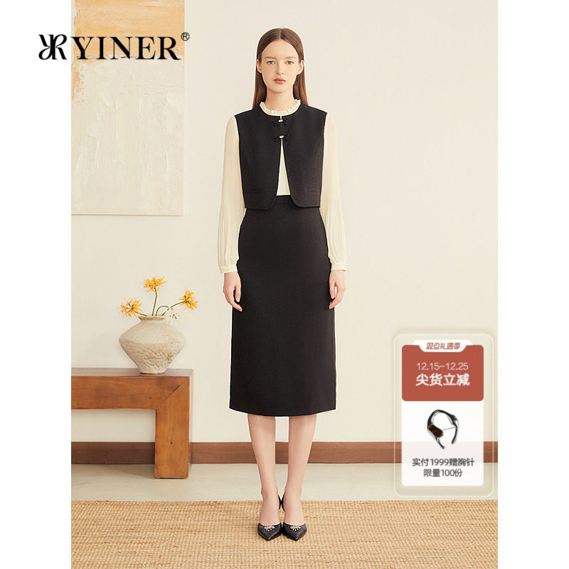 YINER音儿专选2025冬季新款法式粗花呢拼接雪纺撞色假两件连衣裙