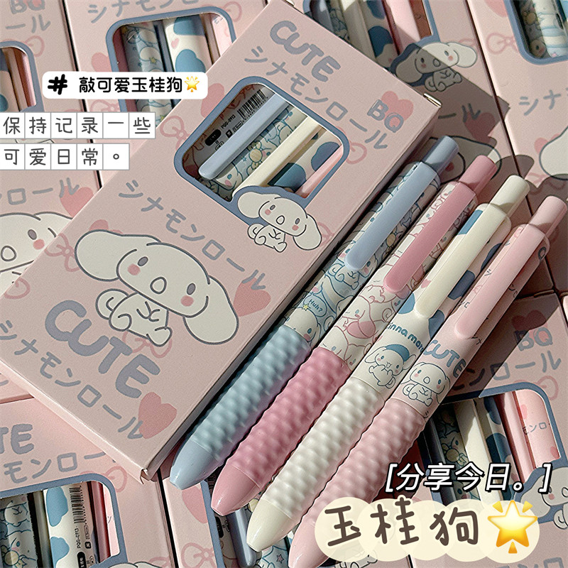 玉桂狗榴莲笔握高颜值ins风按动中性笔学生专用速干0.5黑笔刷题笔
