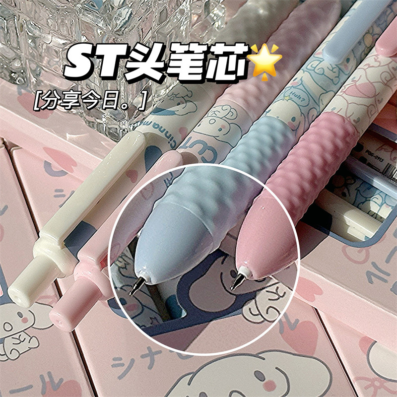 ST刷题笔高颜值按动中性笔圆珠笔黑色水笔小学生专用考试0.5速干碳素笔水性黑笔按压式做笔记签字笔非按斤卖