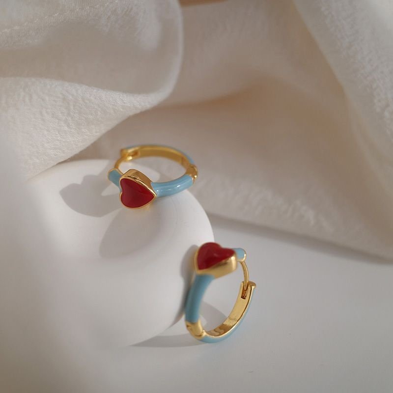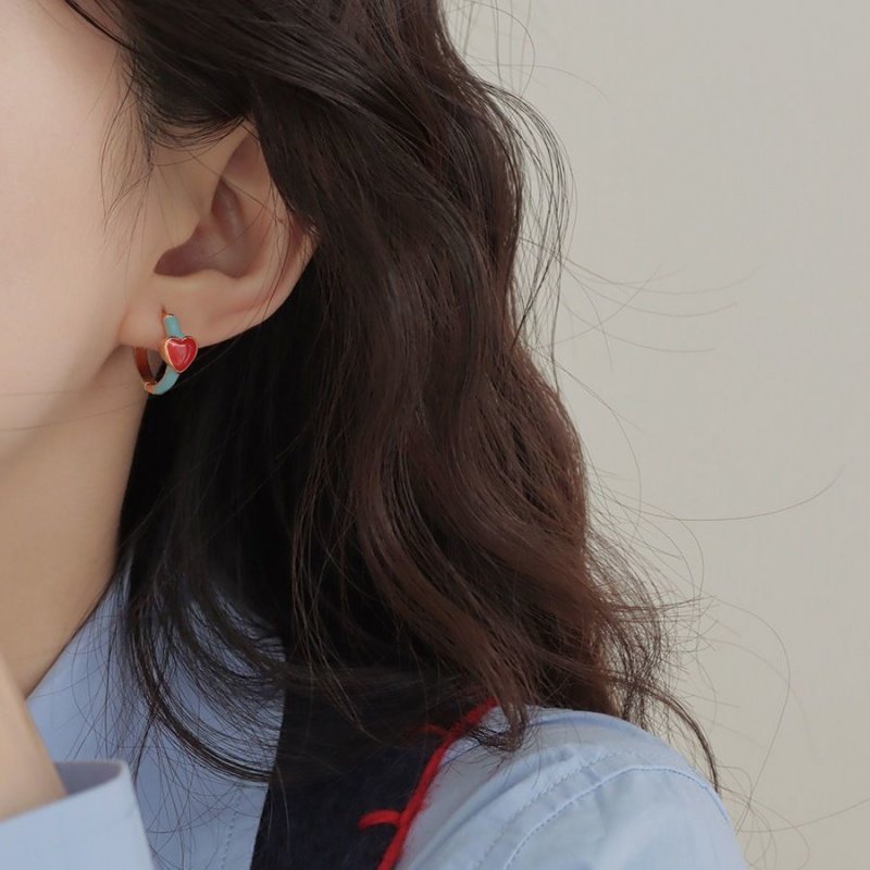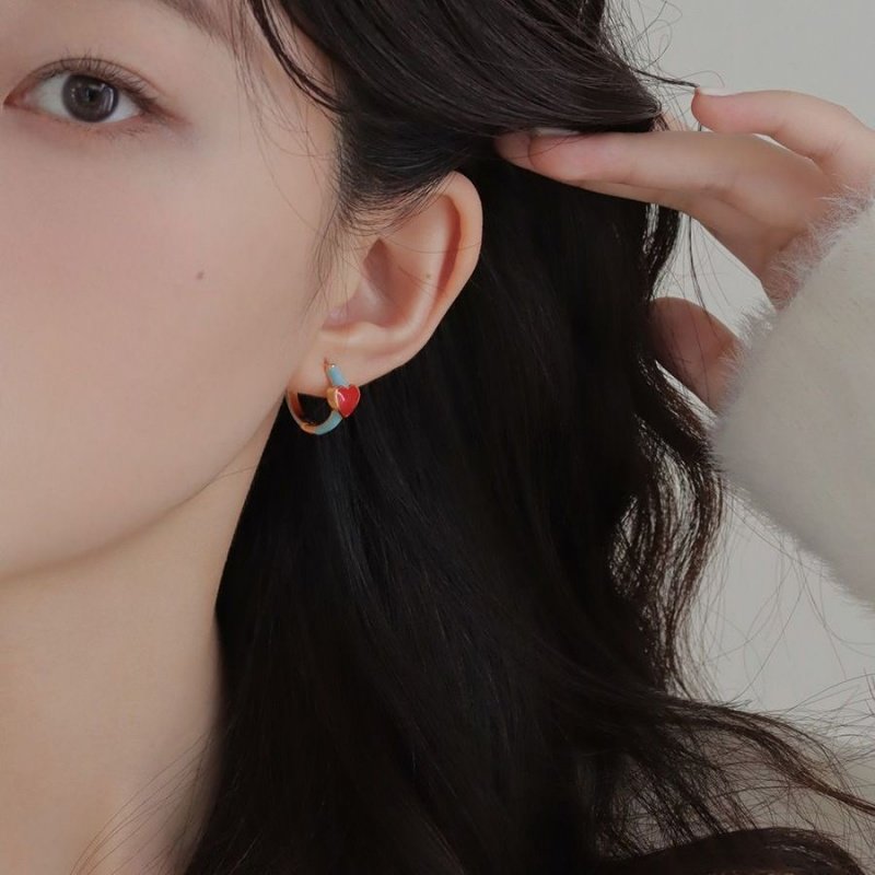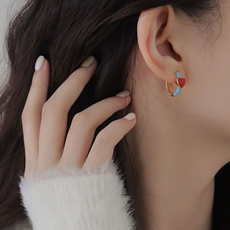 2025年时髦爱心耳圈红色耳饰桃心耳环奶乎乎蓝圆圈耳扣小众新款女
