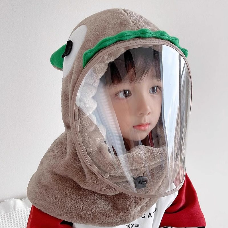 儿童防风帽子骑车挡风面罩宝宝一体护耳帽围巾秋冬季男童女童围脖