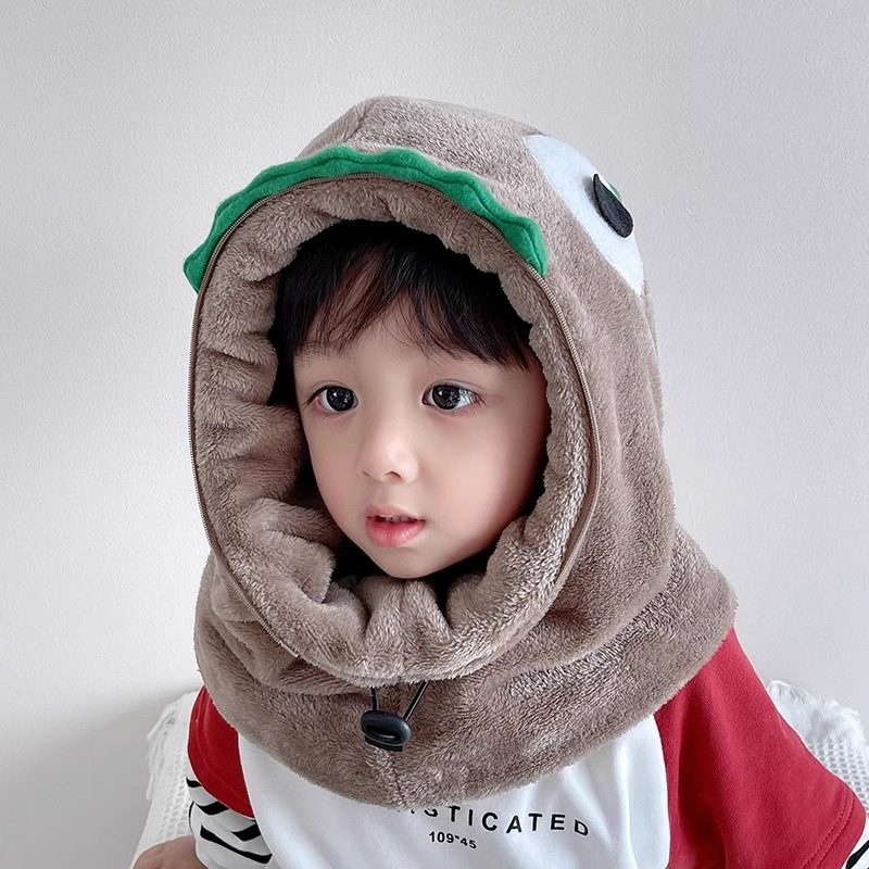 尼多熊婴儿帽子秋围脖一体宝宝毛绒帽防风护耳帽冬季保暖婴幼儿帽