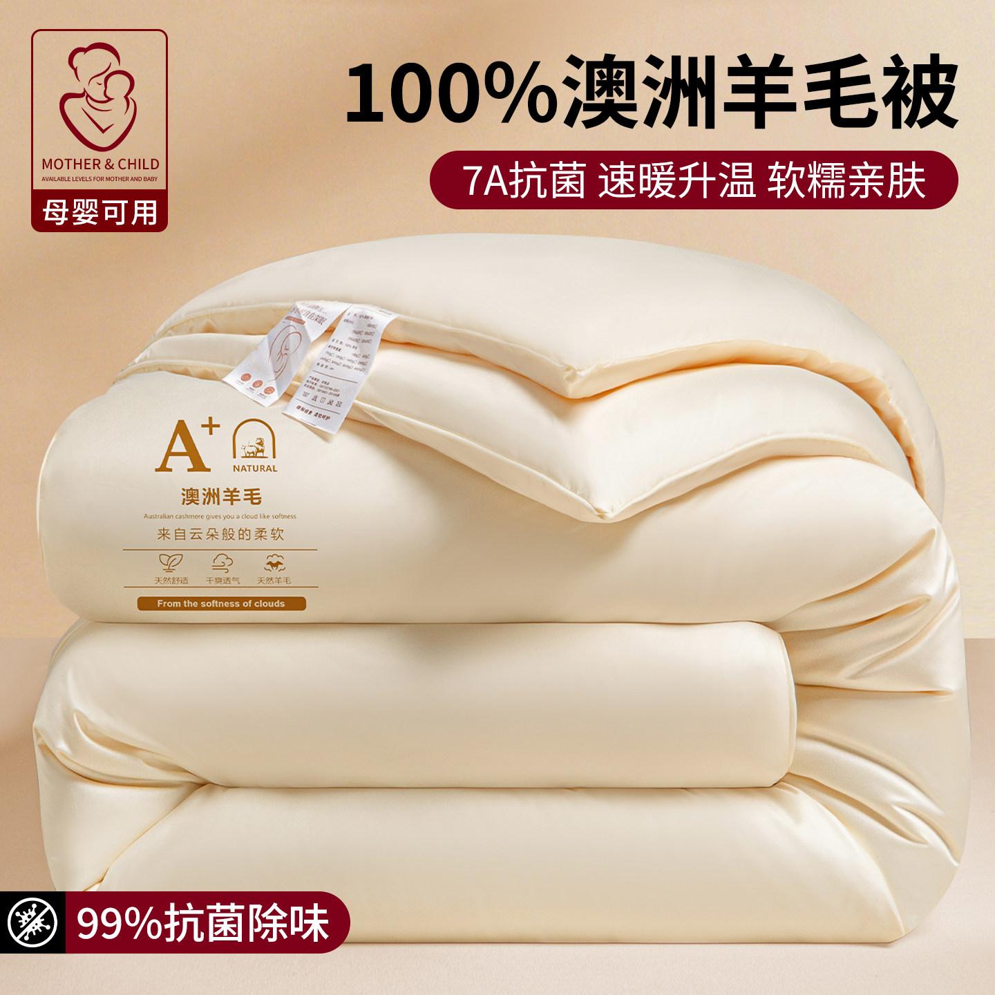 水星家纺澳洲羊毛被子A类抑菌羊毛四季被冬被加厚冬被秋冬床品