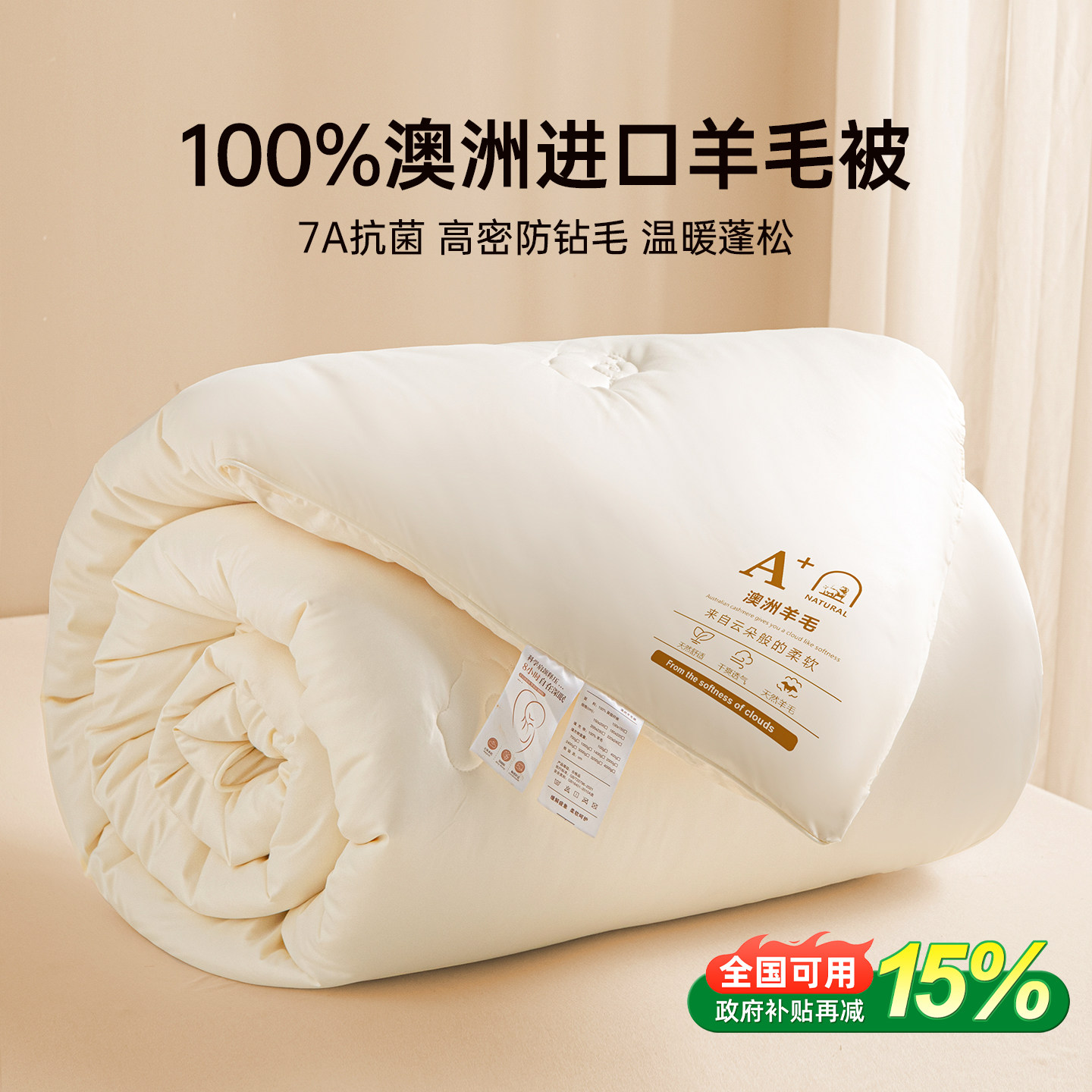 雅兰家纺澳洲进口羊毛被抗菌春秋被保暖被子冬被芯学生宿舍25新品