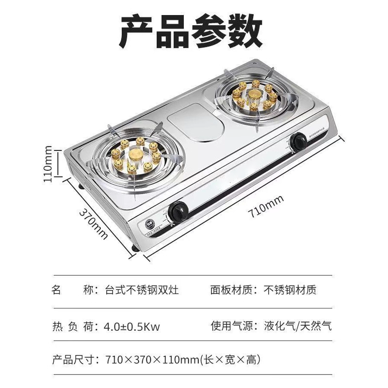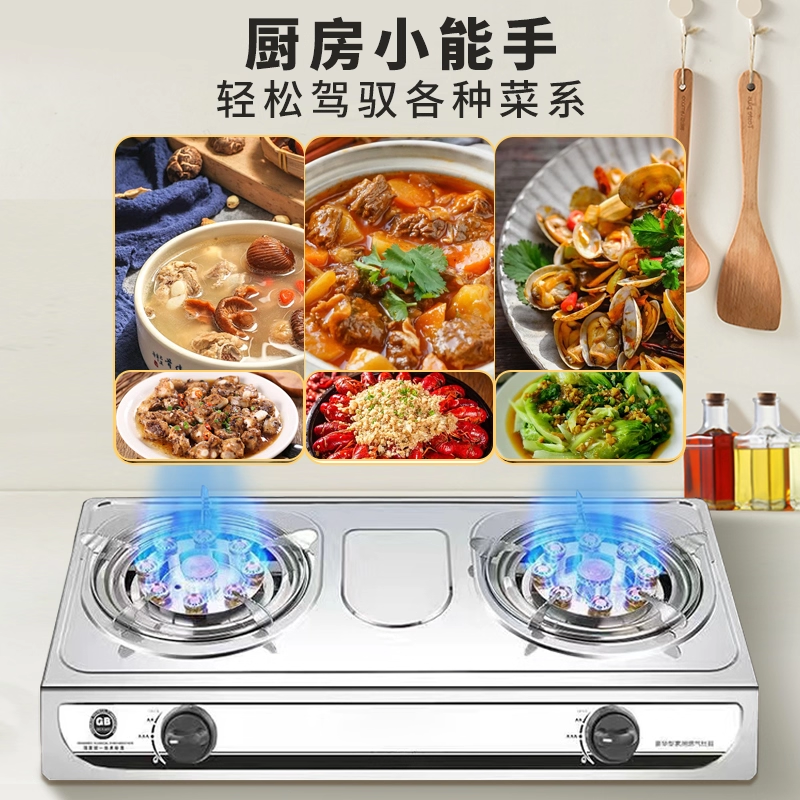 传家好太太家用煤气灶台式不锈钢燃气灶天然气液化气猛火灶具双灶