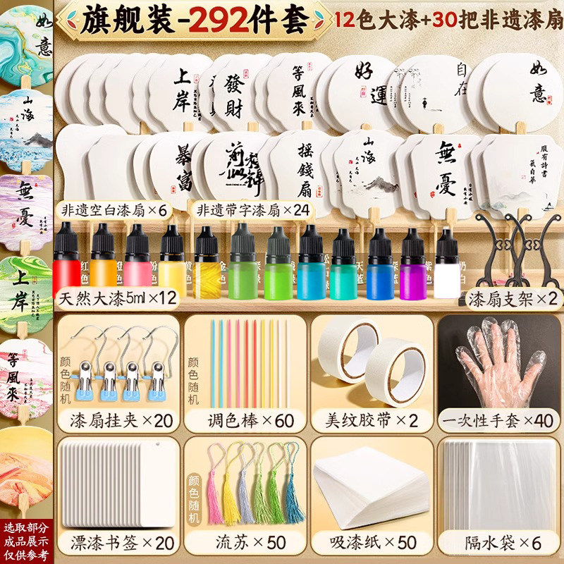 非遗diy漆扇制作材料包全套儿童手工扇子套装大漆颜料空白带字染