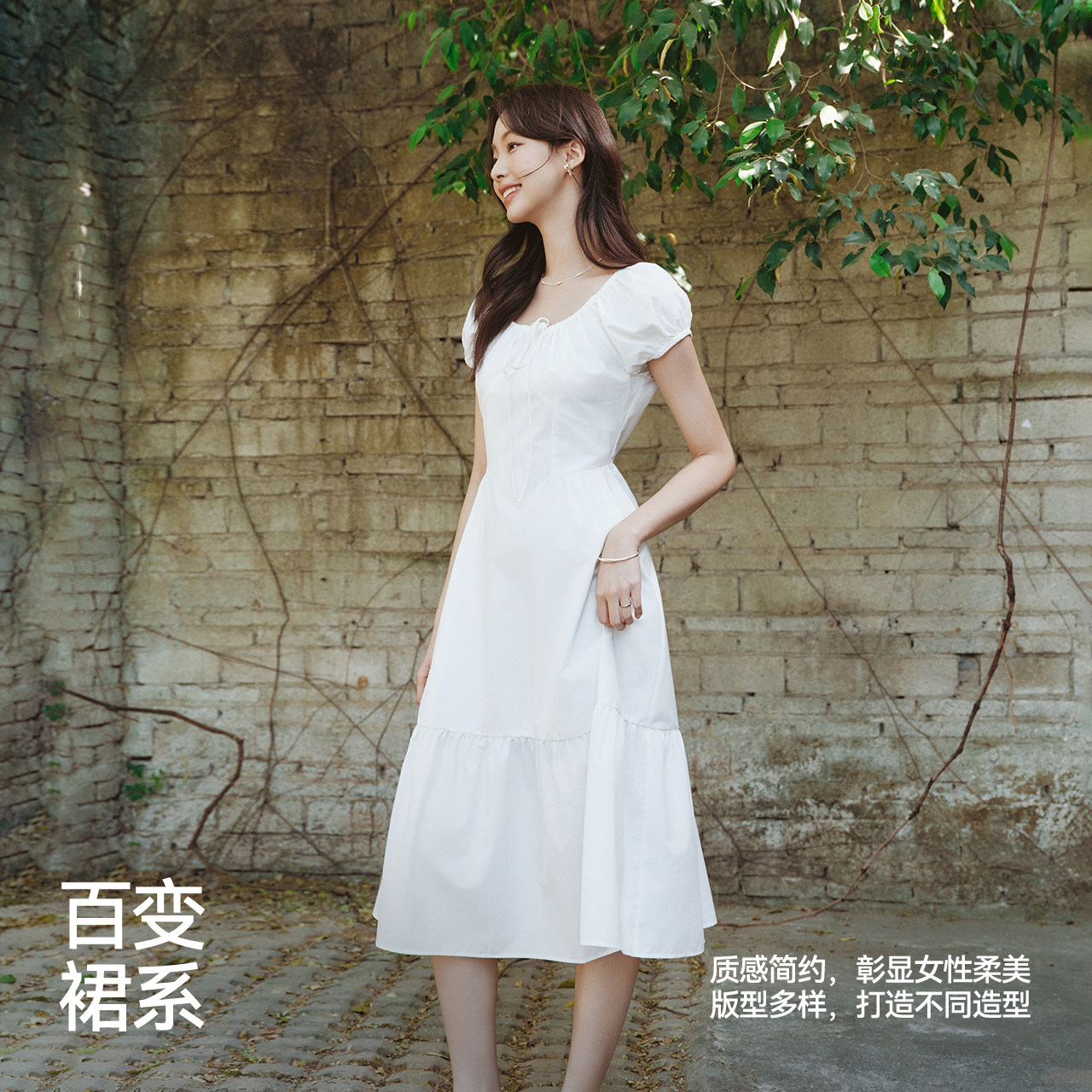 森马连衣裙女白月光气质温柔夏季2025新款蝴蝶结优雅U领长裙初恋