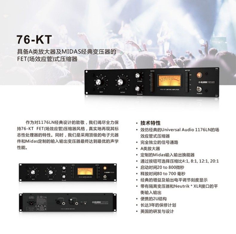 KlarkTeknik 76-KT 2A录音棚单通道硬件FET压缩器鼓人声贝斯效果