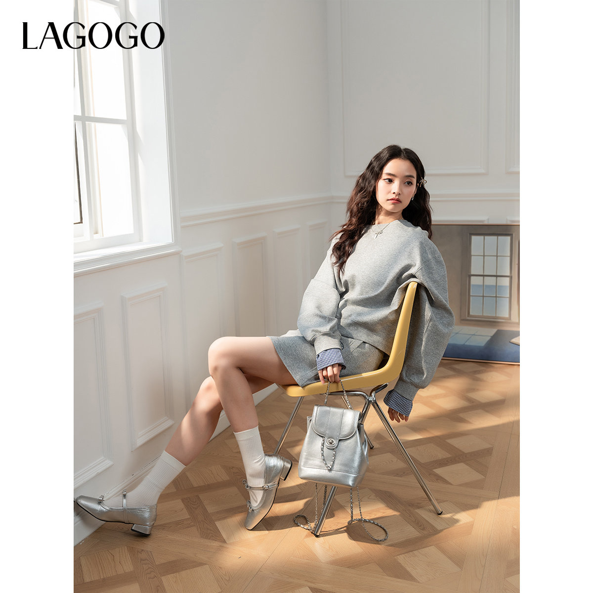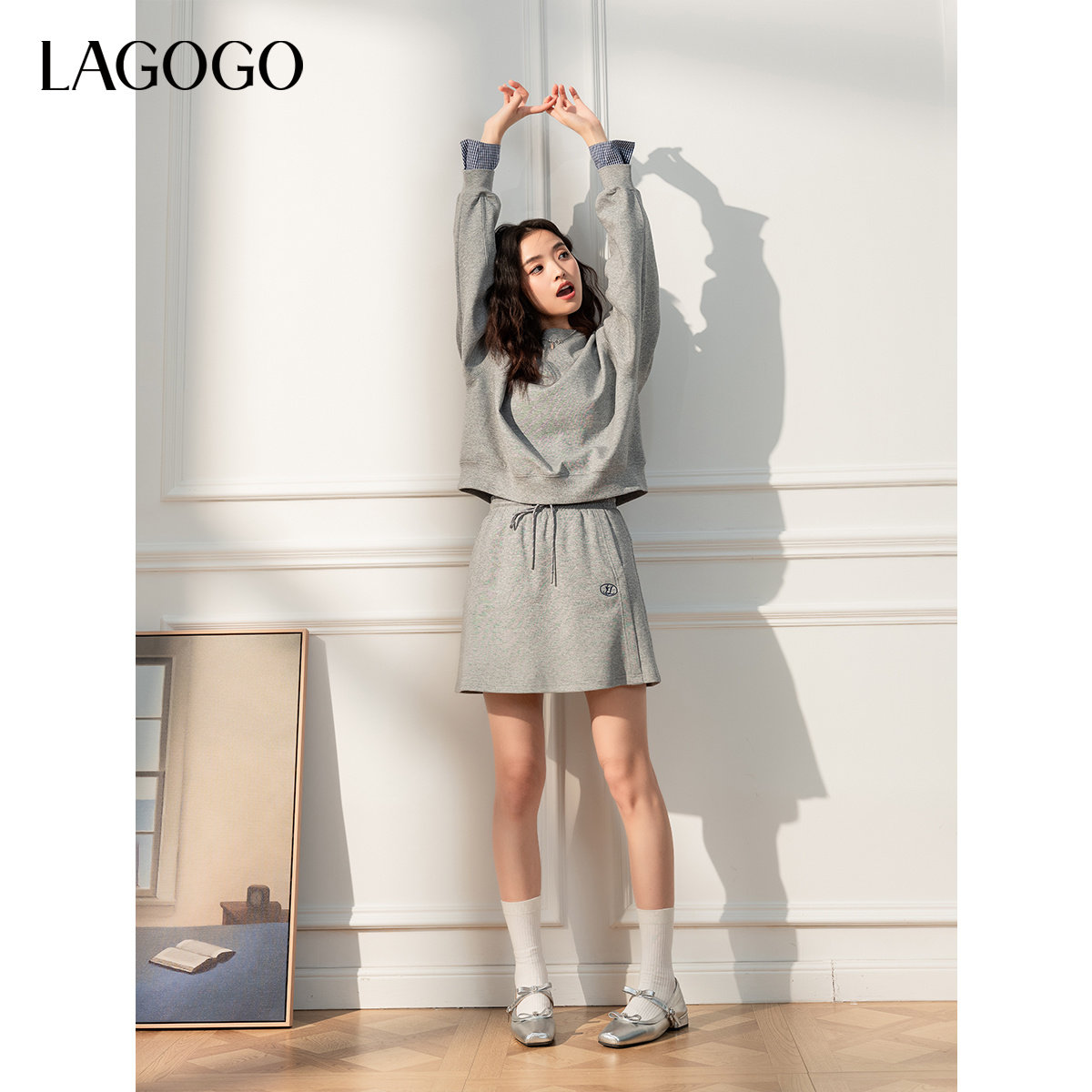 【蘭花系列】LAGOGO灰色半身裙卫衣女拉谷谷2025秋冬新款休闲套装
