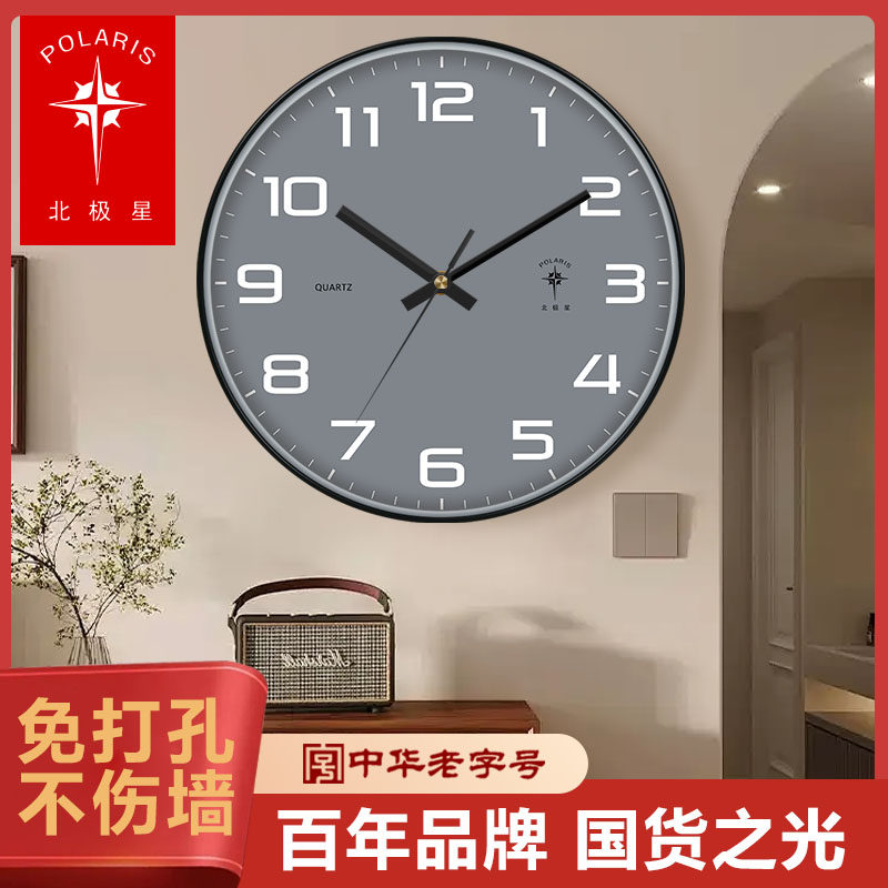北极星钟表挂钟客厅家用静音时钟现代挂墙简约挂表2025新款石英钟