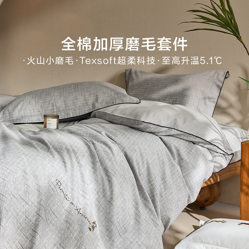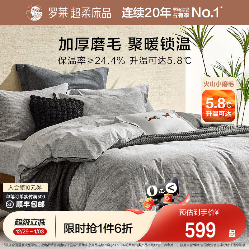 罗莱家纺25秋冬新品床上用品磨毛纯棉加厚床单被套全棉被罩四件套