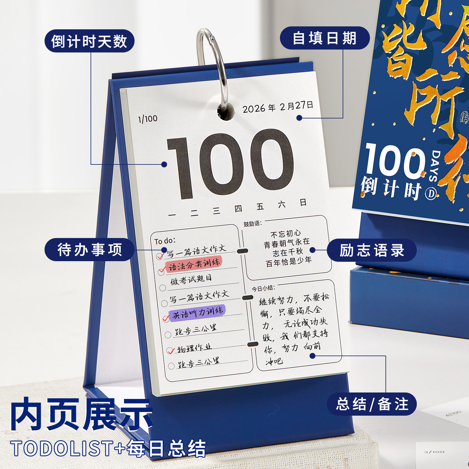 100天倒计时日历中高考试计划台历励志2026年ins风考研神器提醒牌创意个性自律打卡365天200桌面翻页摆件月历
