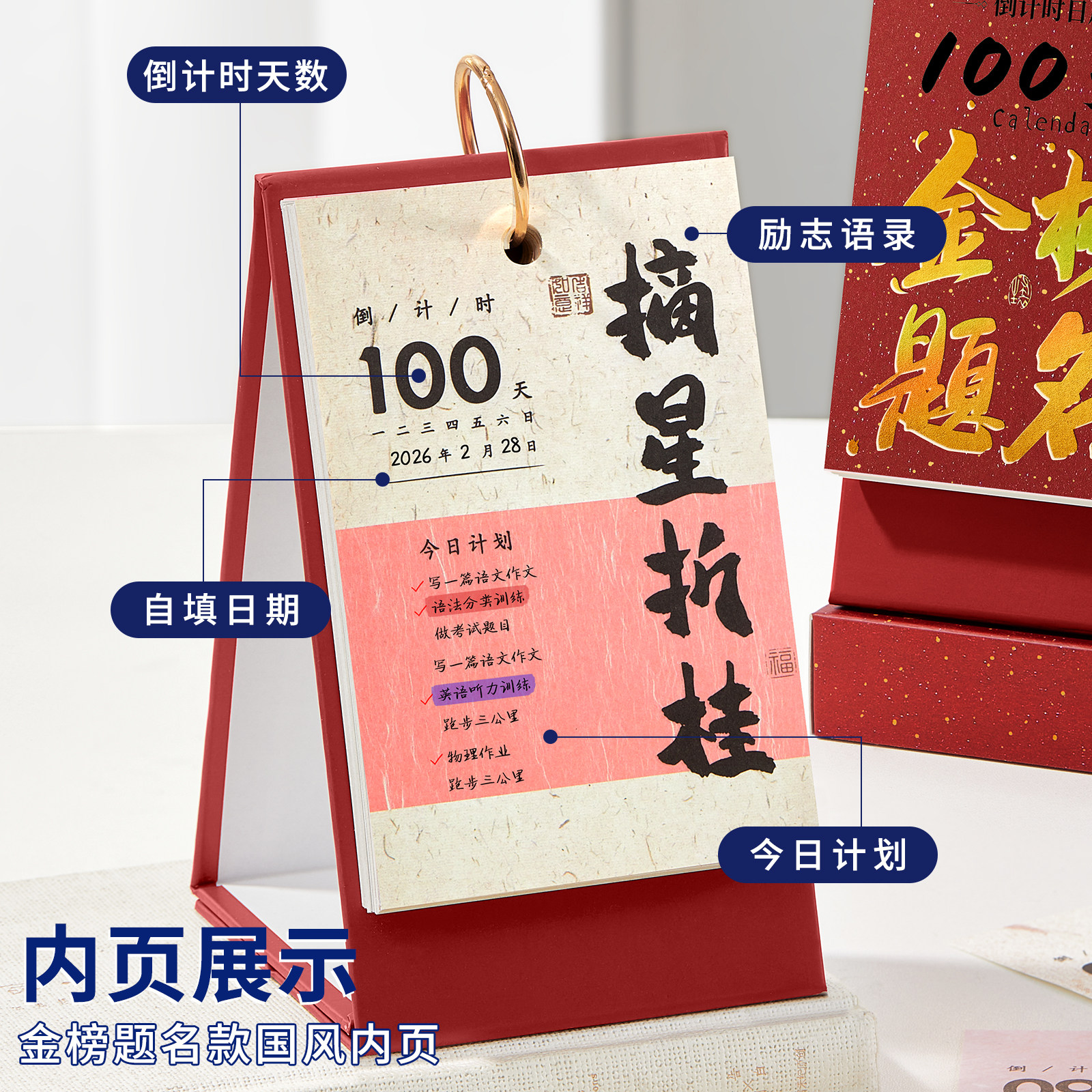 台历2026年烫金新款日历桌面摆件创意高颜值月历万年历高考倒计时打卡记事本大格子计划表商务办公考研备忘录