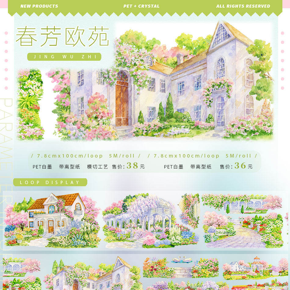 景物志#2月新品春日樱花夏庭苑校园坪台风车现风造景胶带手账拼贴