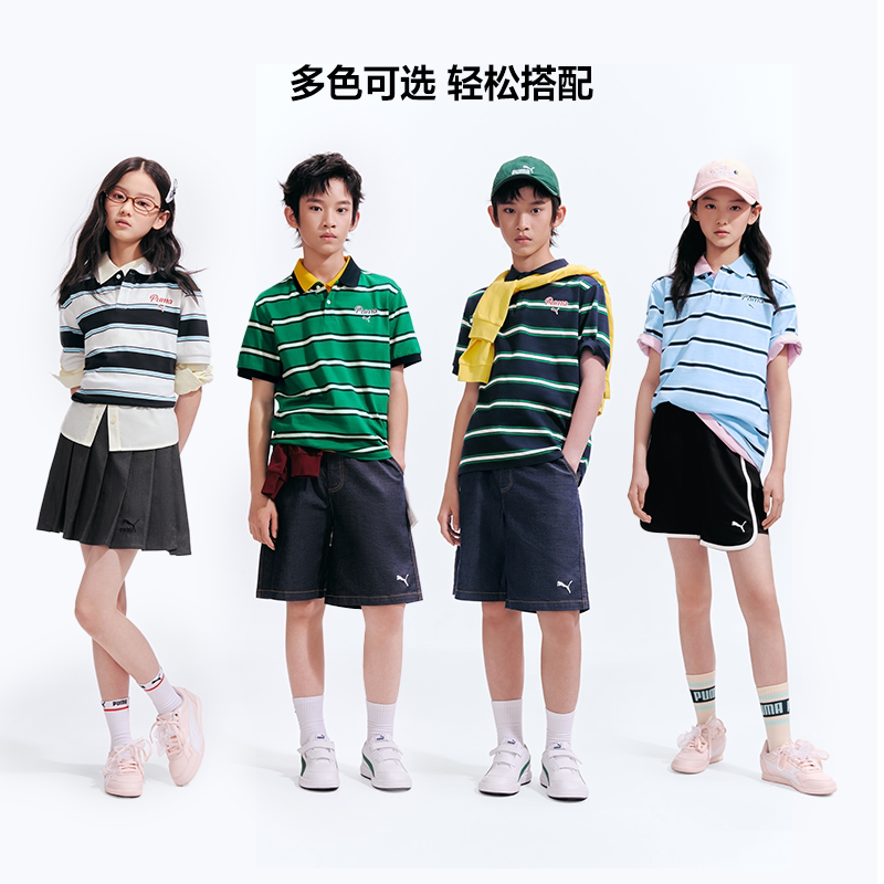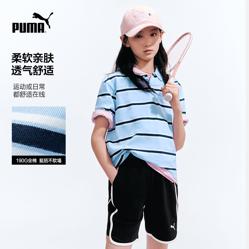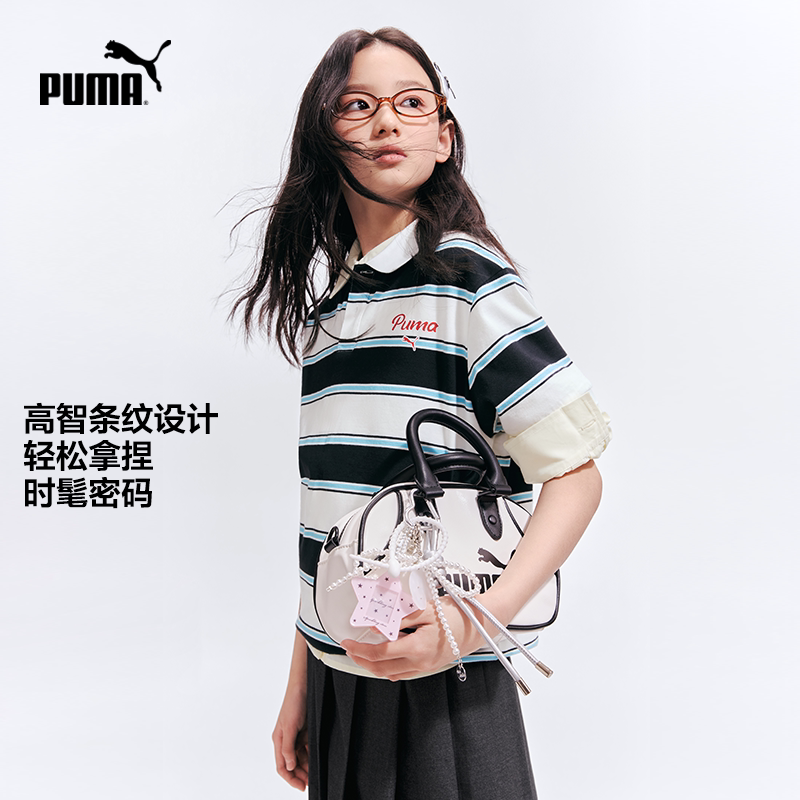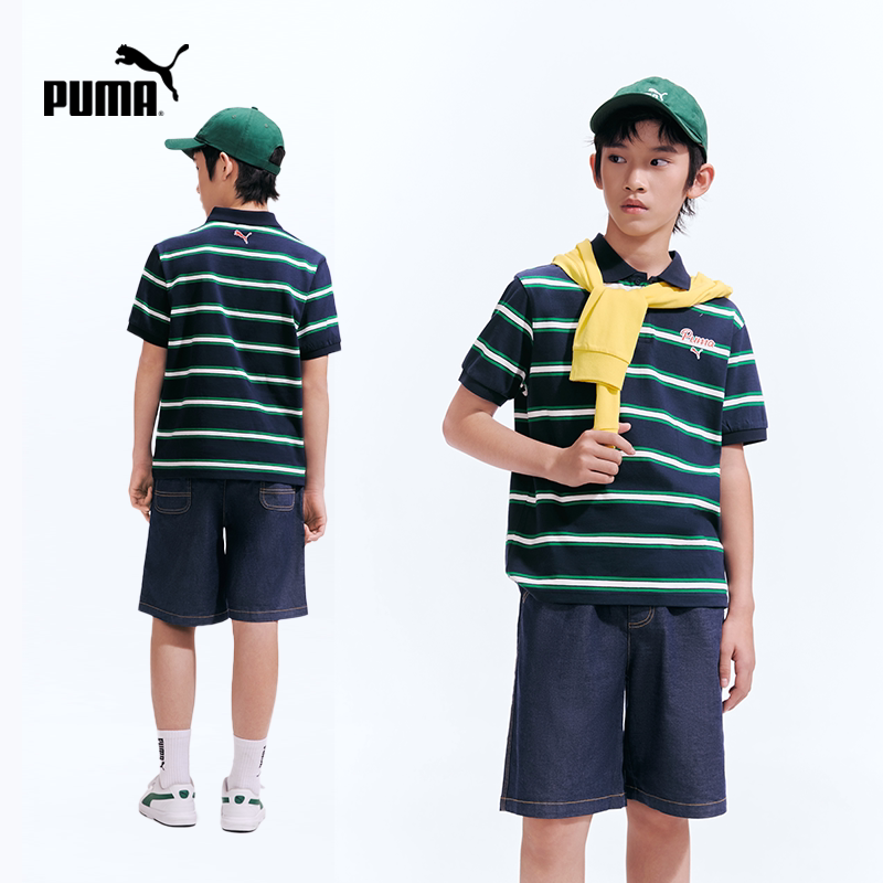 PUMA彪马童装26夏季新款儿童短袖T恤条纹Polo领运动学院风上衣