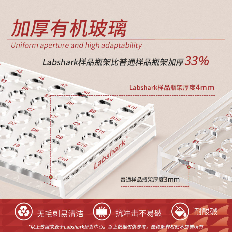 Labshark有机玻璃样品瓶架实验室用试管架2mL 5mL 10mL 20mL 30mL 50孔进样瓶子架子加厚耐用