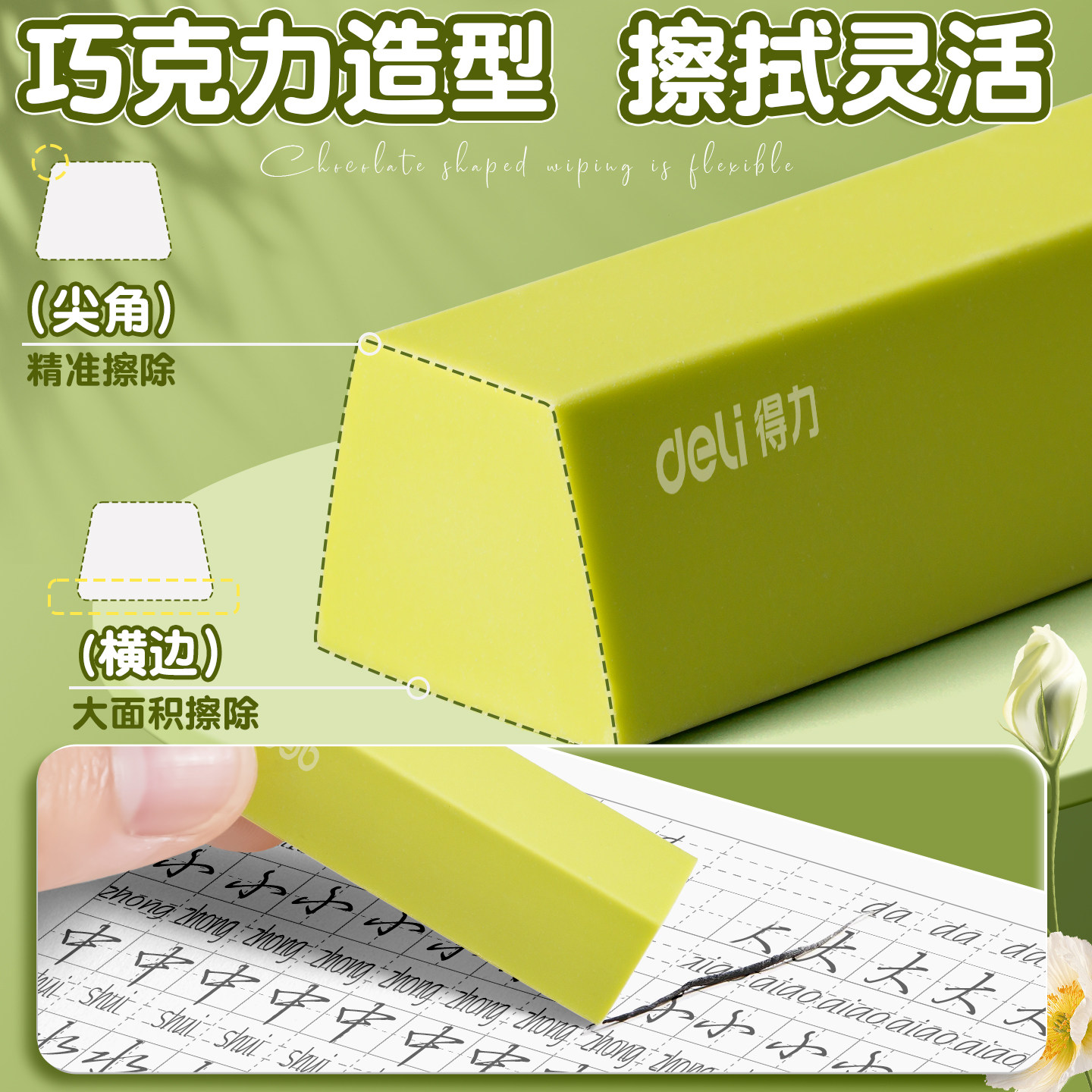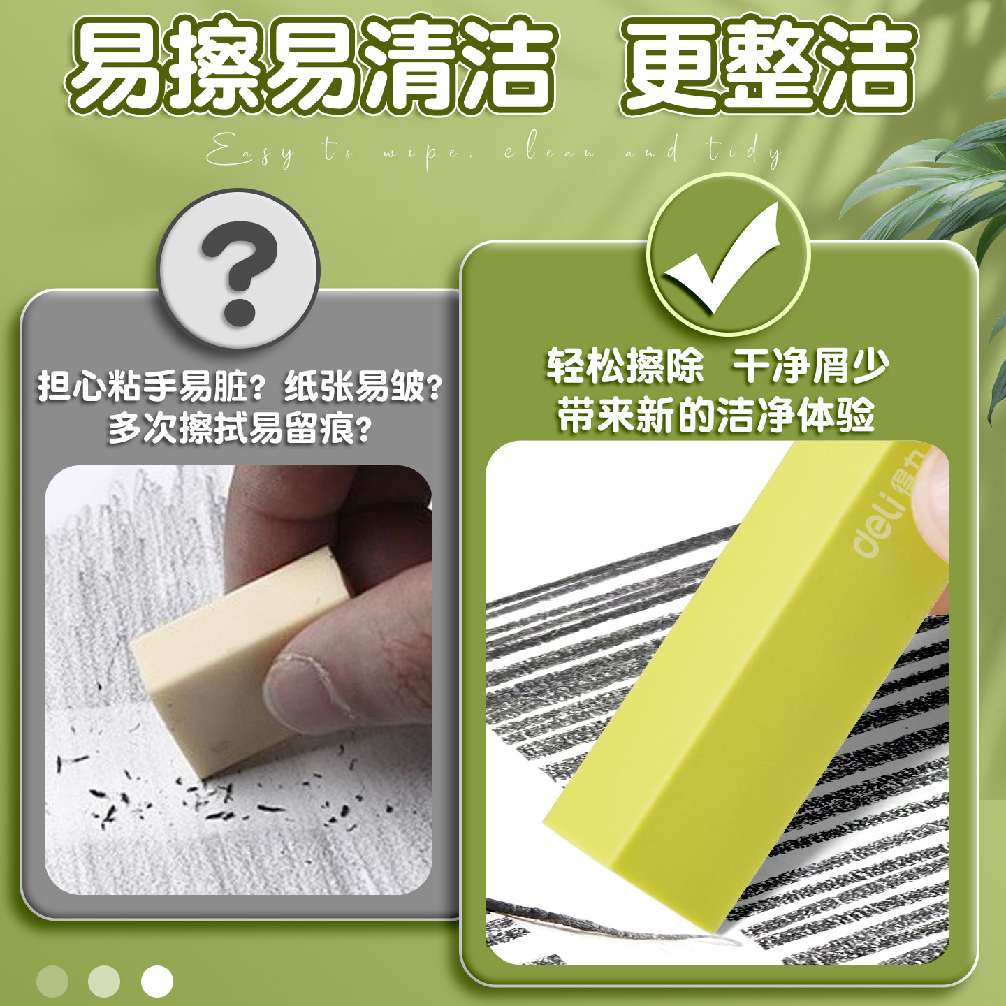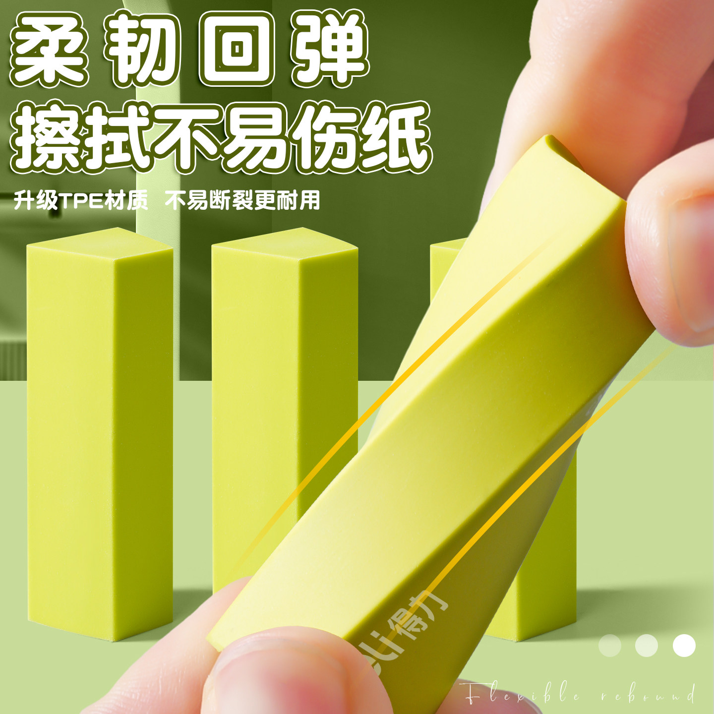 得力真集屑橡皮擦小学生专用一年级擦拭成条少屑幼儿园高颜值儿童橡皮擦无碎屑干净不易留痕素描美术铅笔象皮