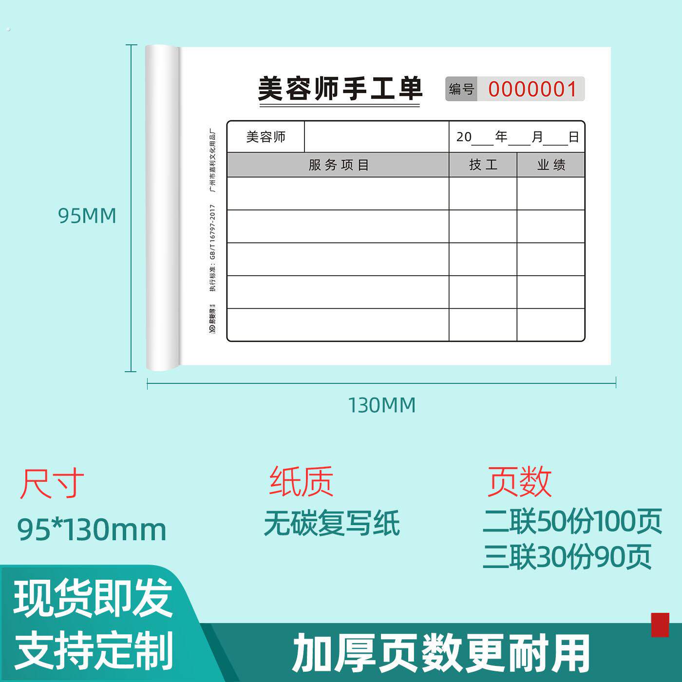 美容师手工单美容美甲业绩记工本美睫美体技师业绩本子技工提成本