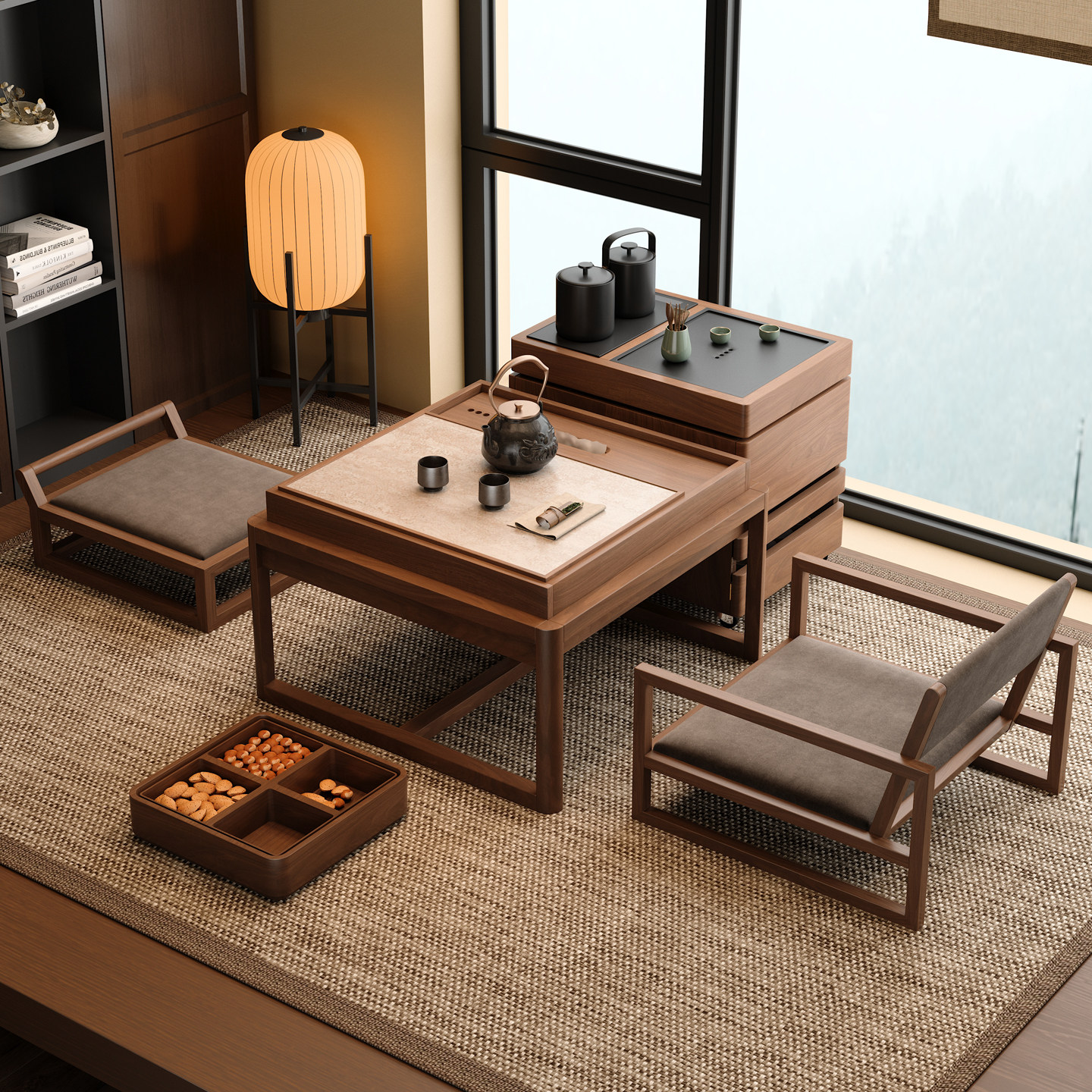 木小咖 阳台小桌椅小户型榻榻米休闲泡茶桌椅一桌两椅实木茶桌椅