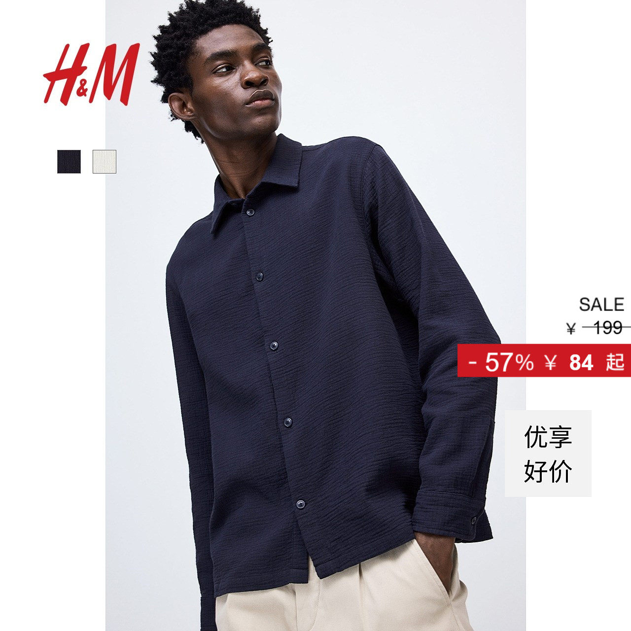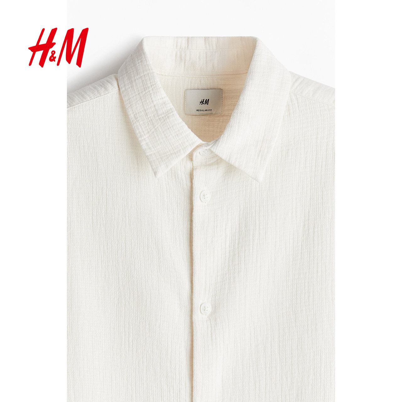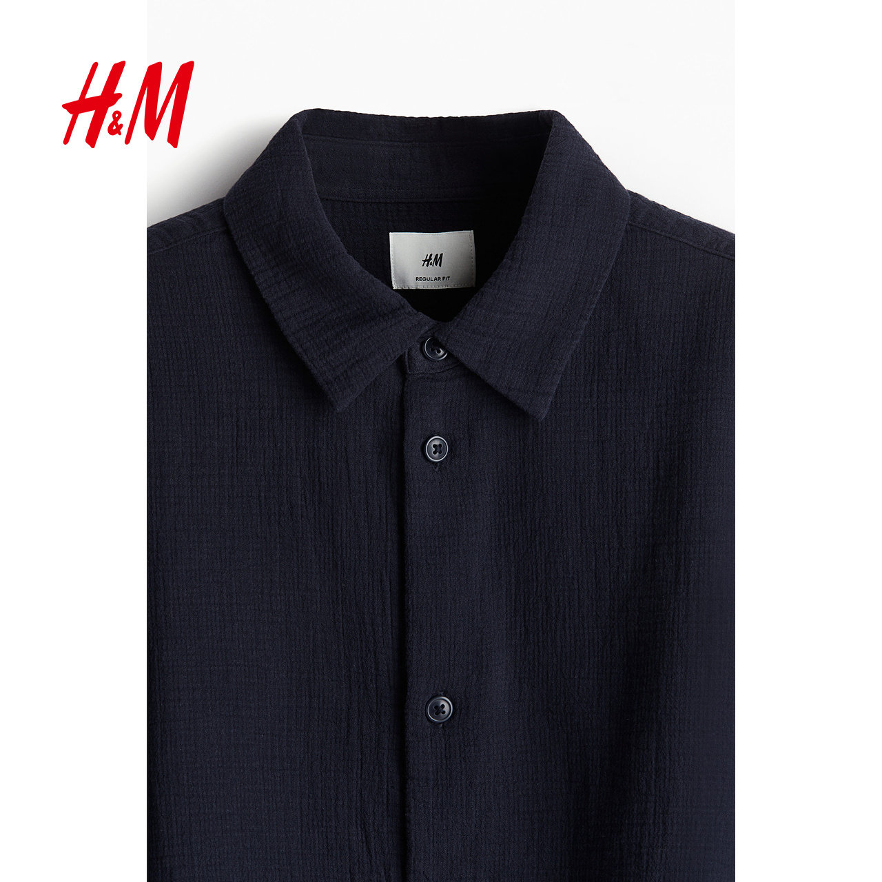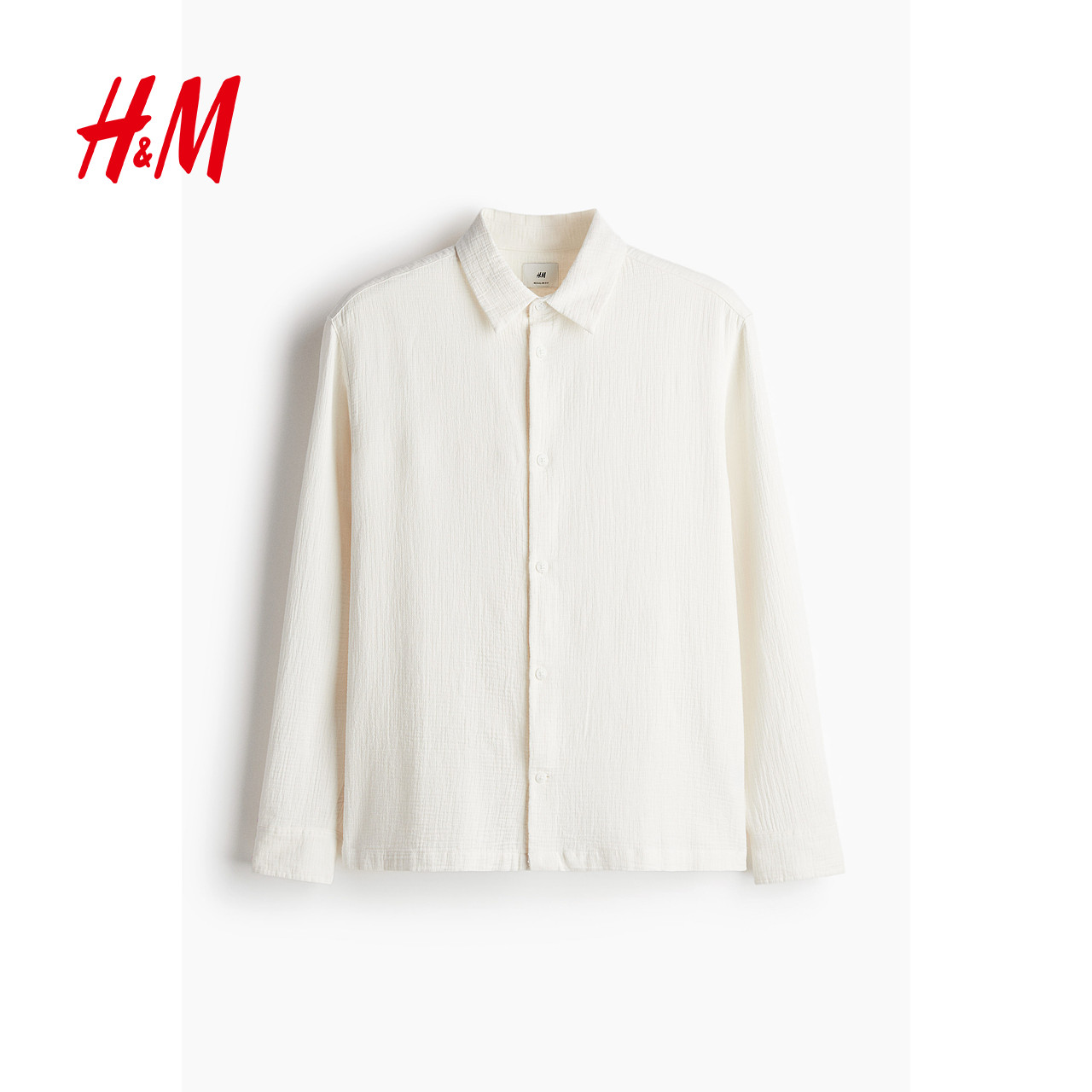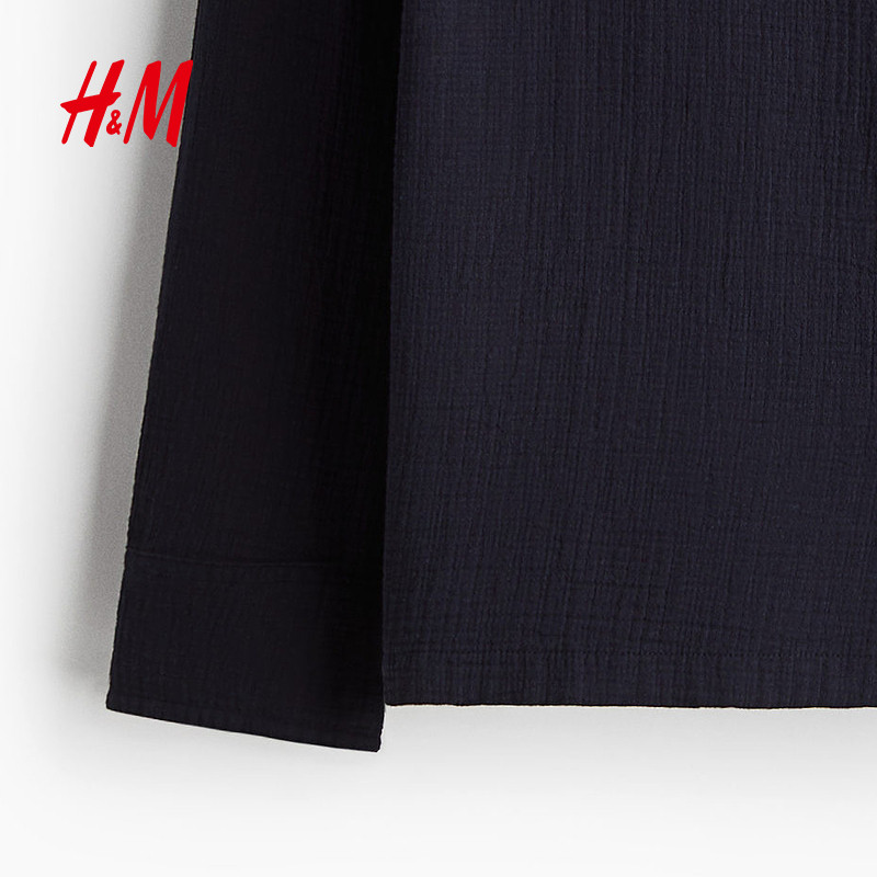 HM男装衬衫冬季气质翻折领标准版型梭织长袖上衣1241449