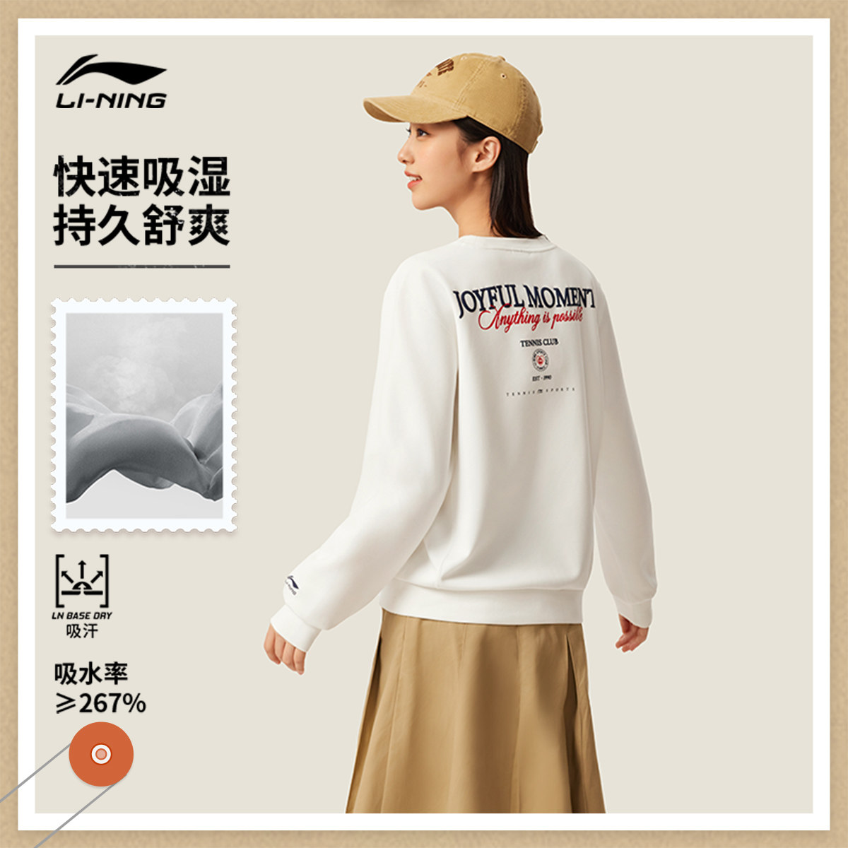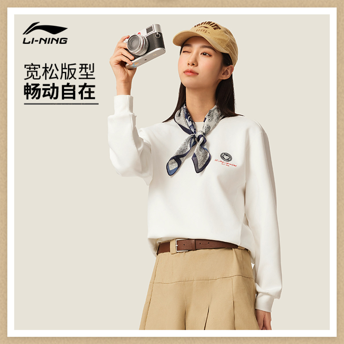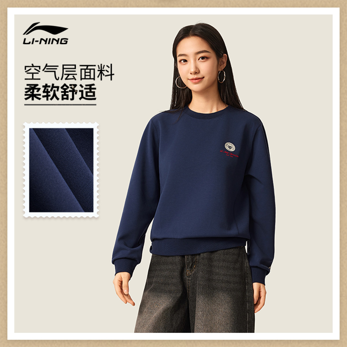 李宁卫衣女士25新款运动潮流系列圆领女装冬季休闲上衣针织运动服