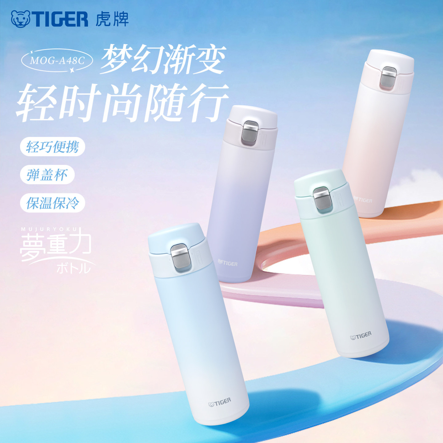 tiger虎牌梦幻渐变色保温杯便携弹盖小清新男生女士水杯杯子480ml