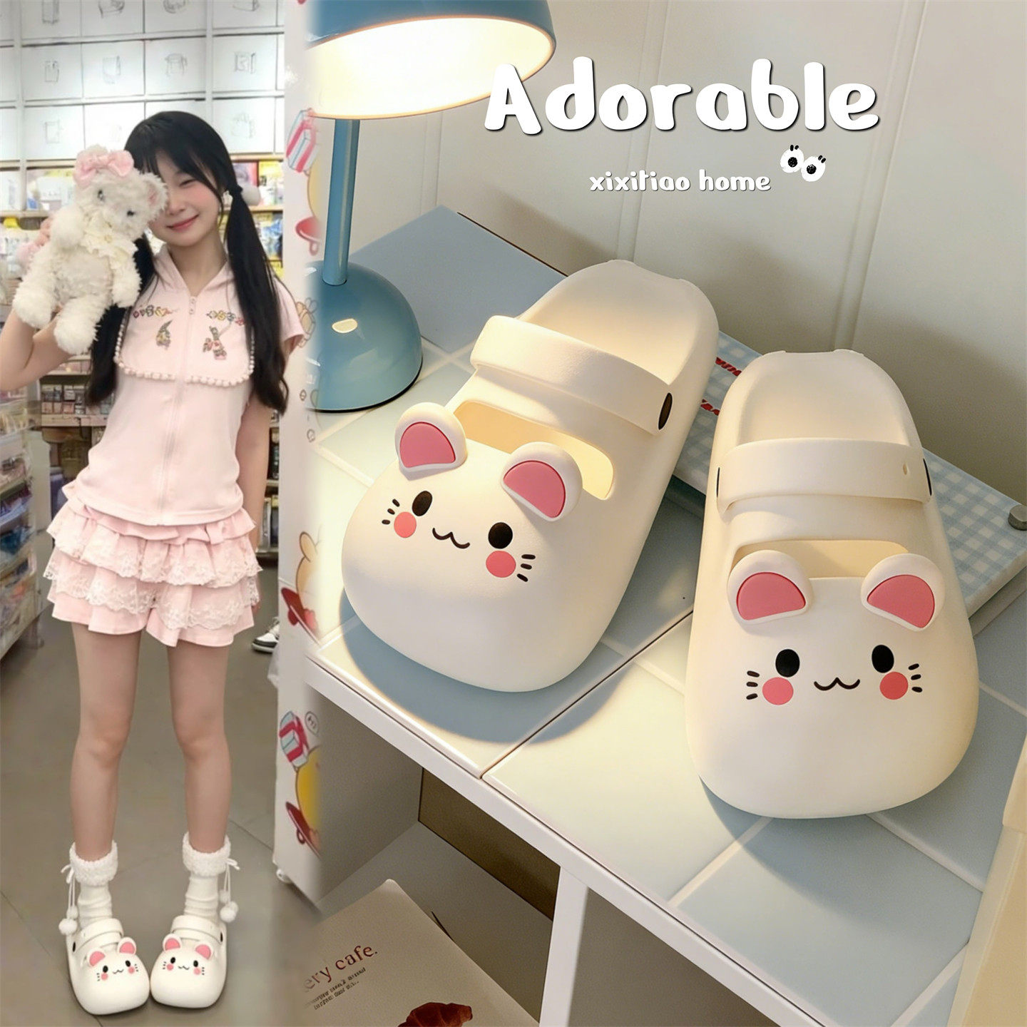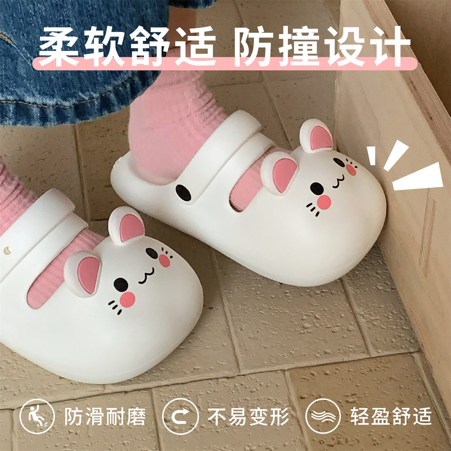 细细条 玛丽珍包头半拖鞋女夏软萌可爱小老鼠防滑厚底eva沙滩凉鞋