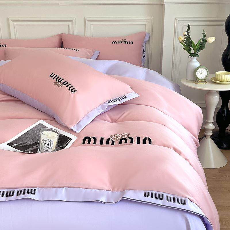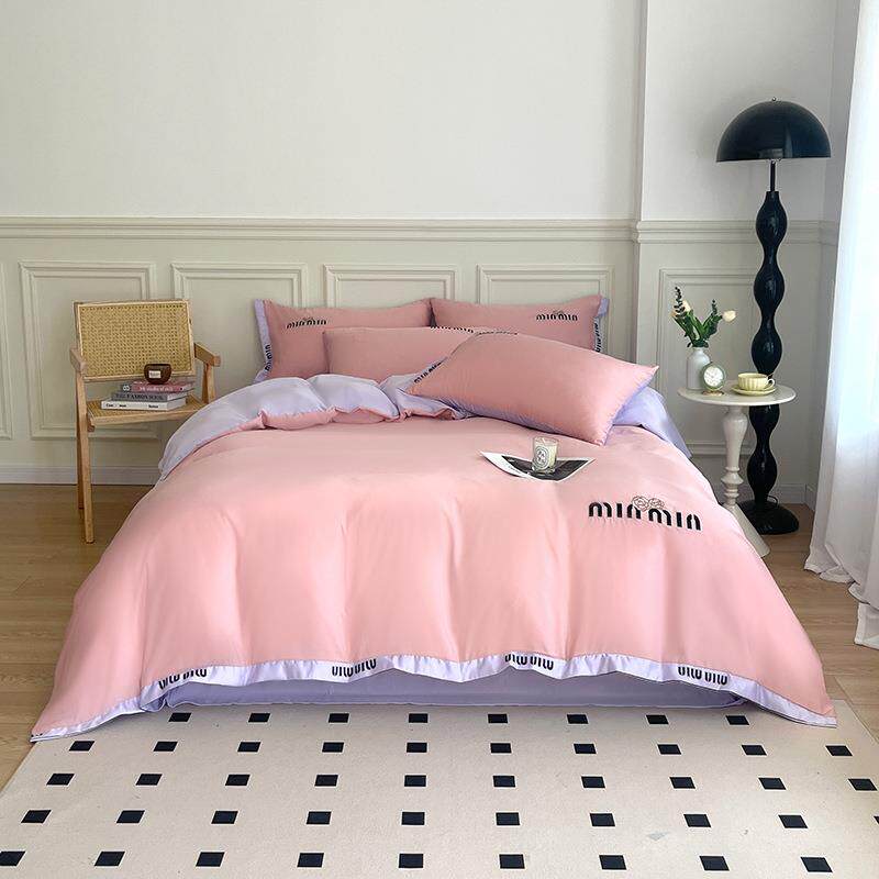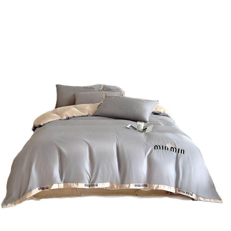 夏季水洗真丝刺绣四件套丝滑提花被罩冰丝床上用品床单三件套