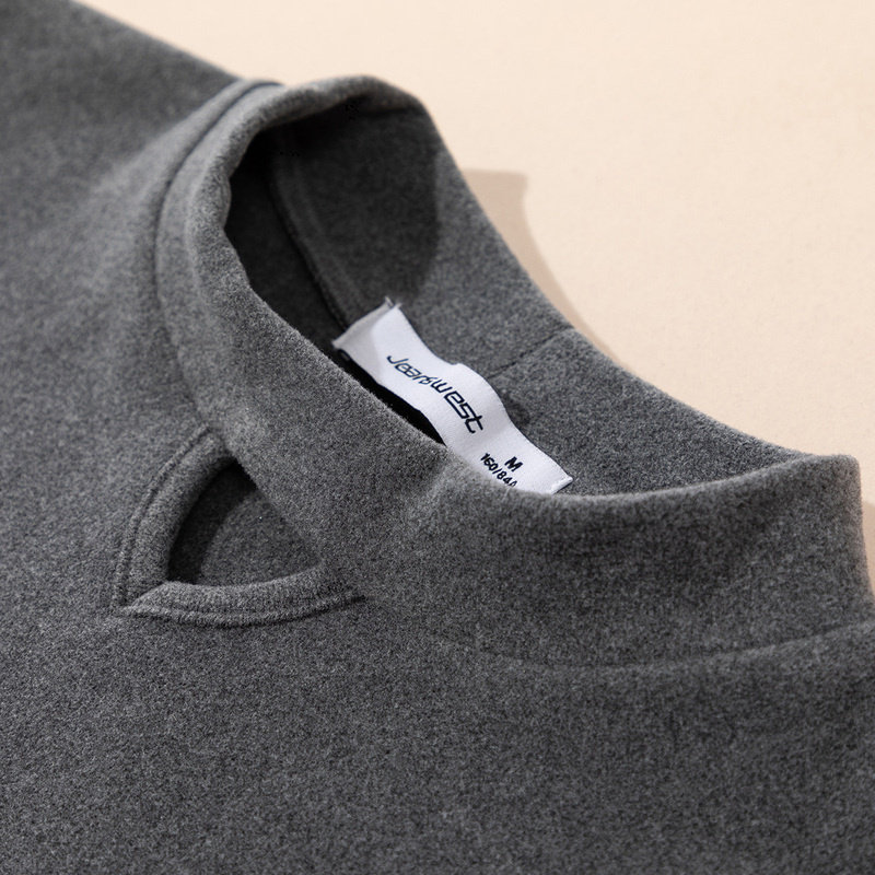 蕉下亨利衫女长袖T恤v领秋冬修身保暖低领打底衫半开领白色上衣