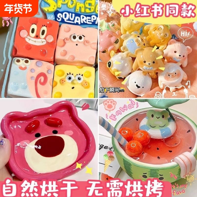 石塑粘土diy材料包套装黏土手工泥塑石膏可塑轻粘土蛋仔软陶时速软陶泥儿童无毒玩具女孩免烤冰箱贴开学亮油