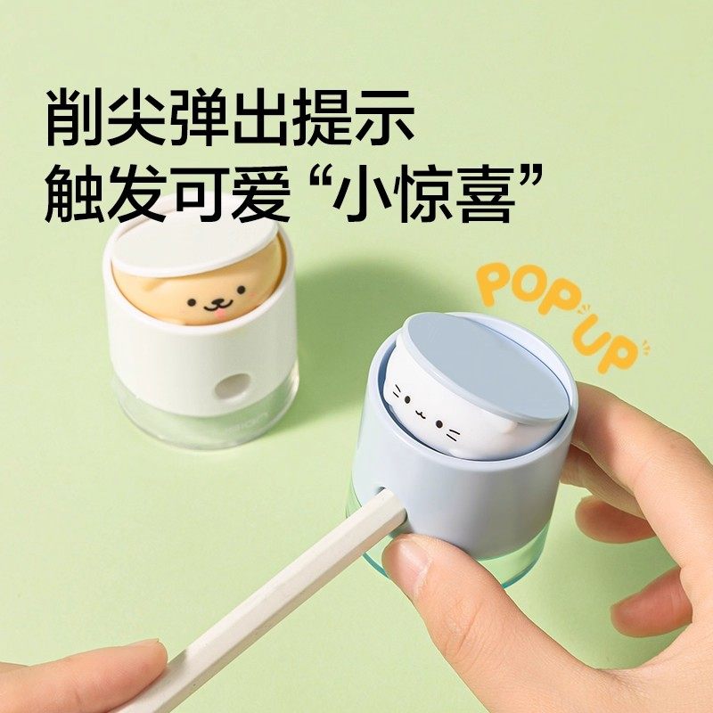 得力纽赛跳跳宠卷笔刀迷你便携削笔器削尖提示小学生用萌趣可爱卡通转笔刀使用多种笔型