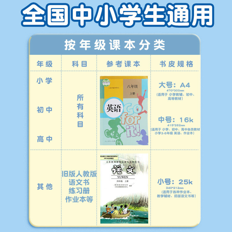 包书皮书套透明书本保护套小学生一二年级书衣16K包书纸三年级四五年级下册全套课本a4书壳初中生专用自粘书